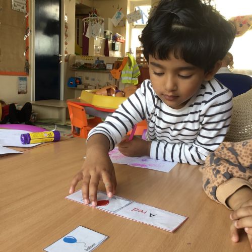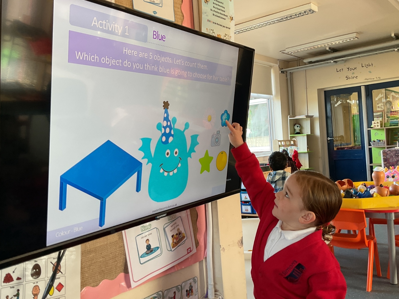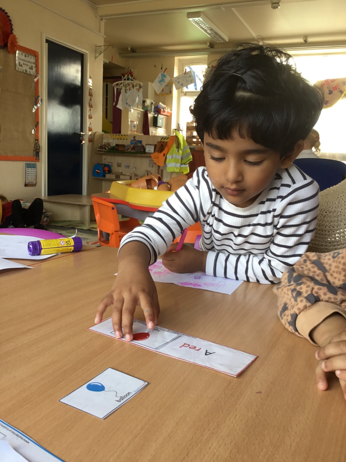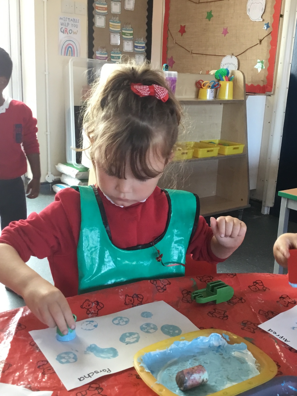 In maths, we have been learning about the colours, red, blue and yellow. We have made pictures and models using these colours. In RE, we have heard how we are all special and that God made us. We drew ourselves and made potato heads talking about our bodies.