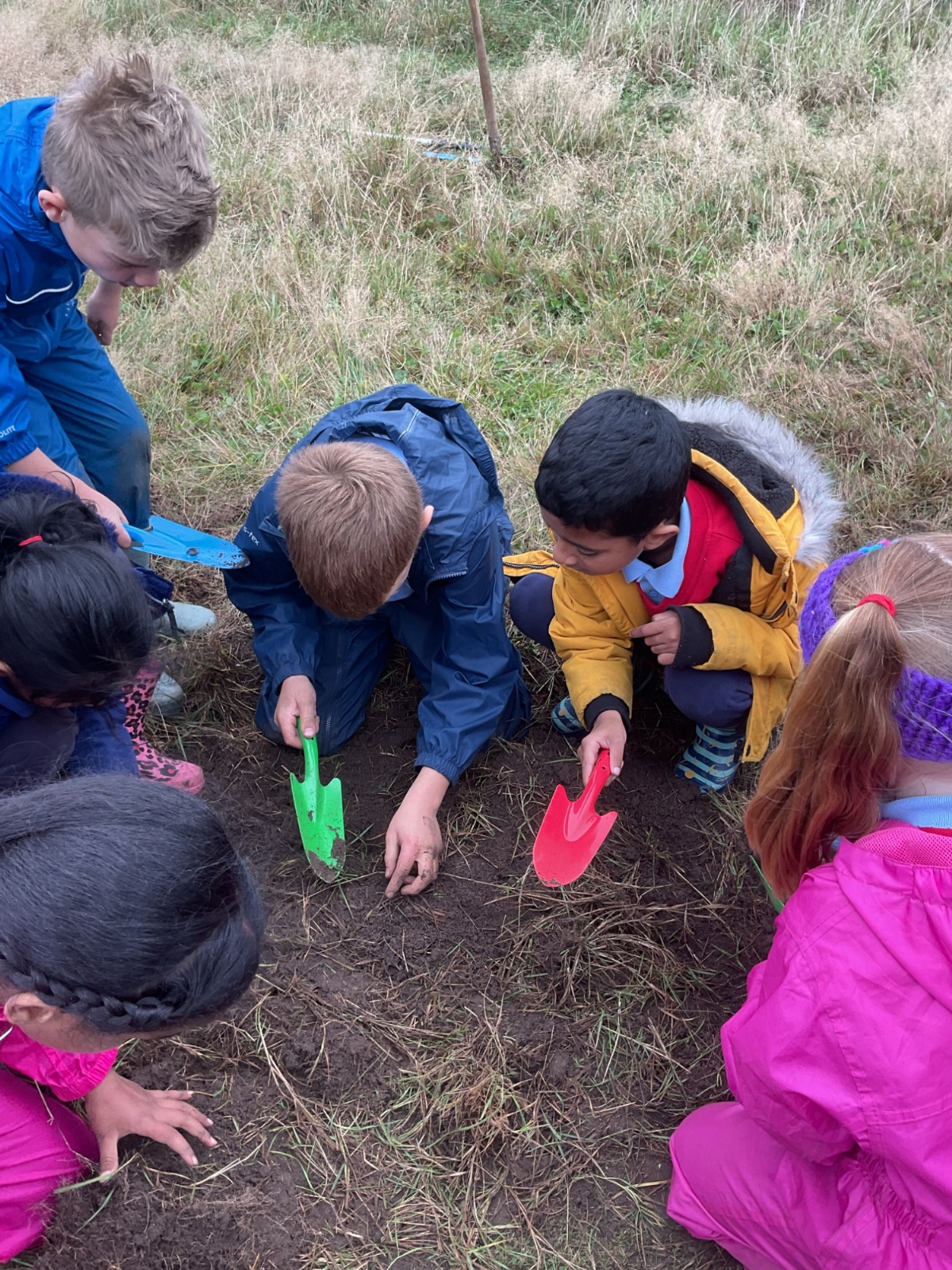 During Forest School, we worked as a team to prepare an area of soil for planting bulbs. We're looking forward to Spring and observing their plants growing over time.