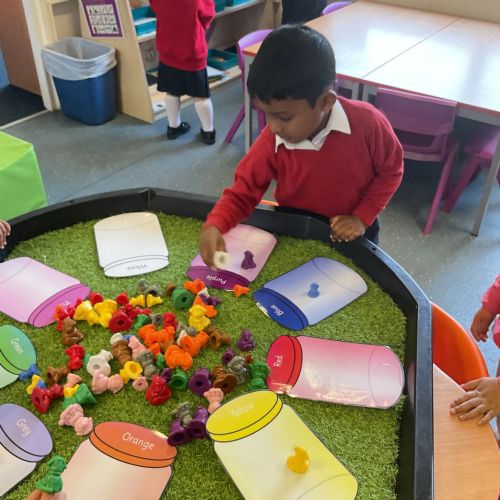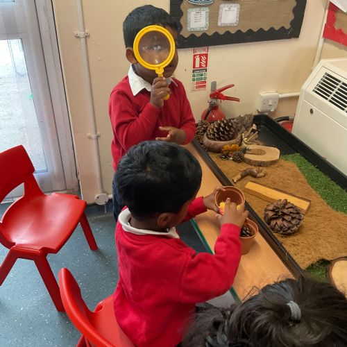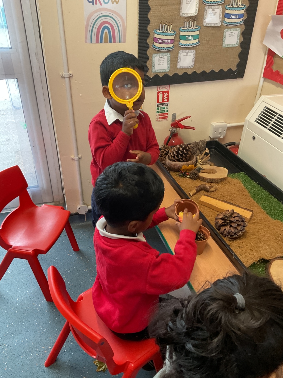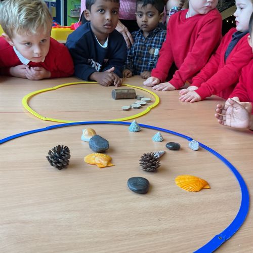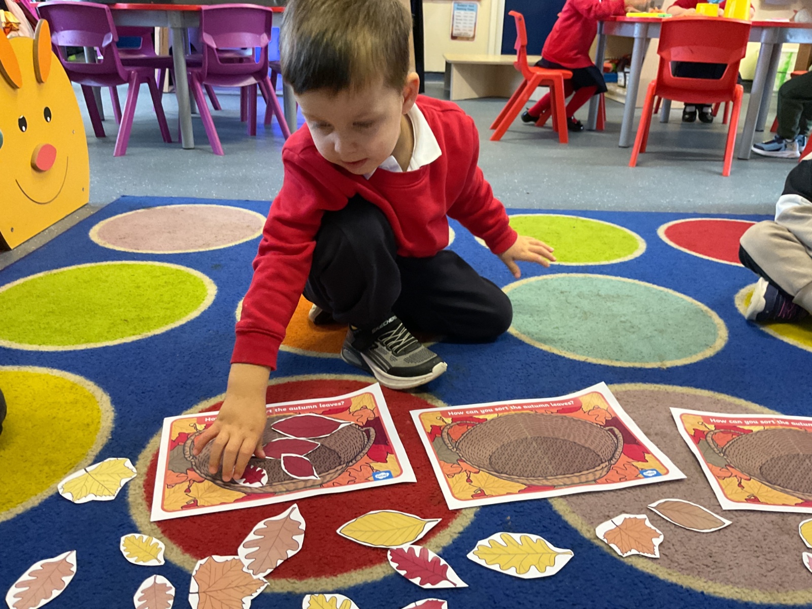 • We have continued to explore sorting, we sorted objects and made our own rules, for example, leaves and not leaves.