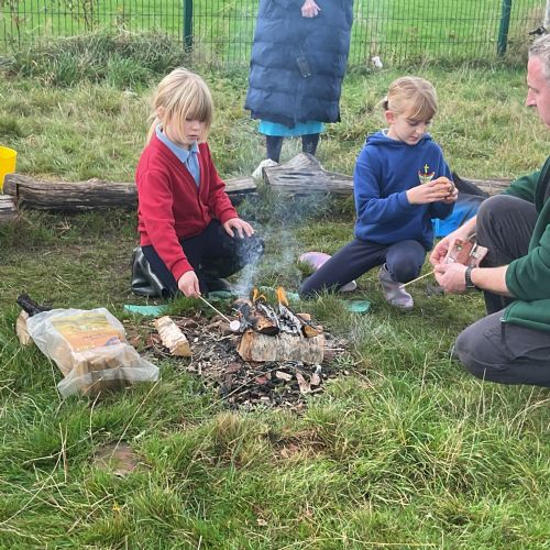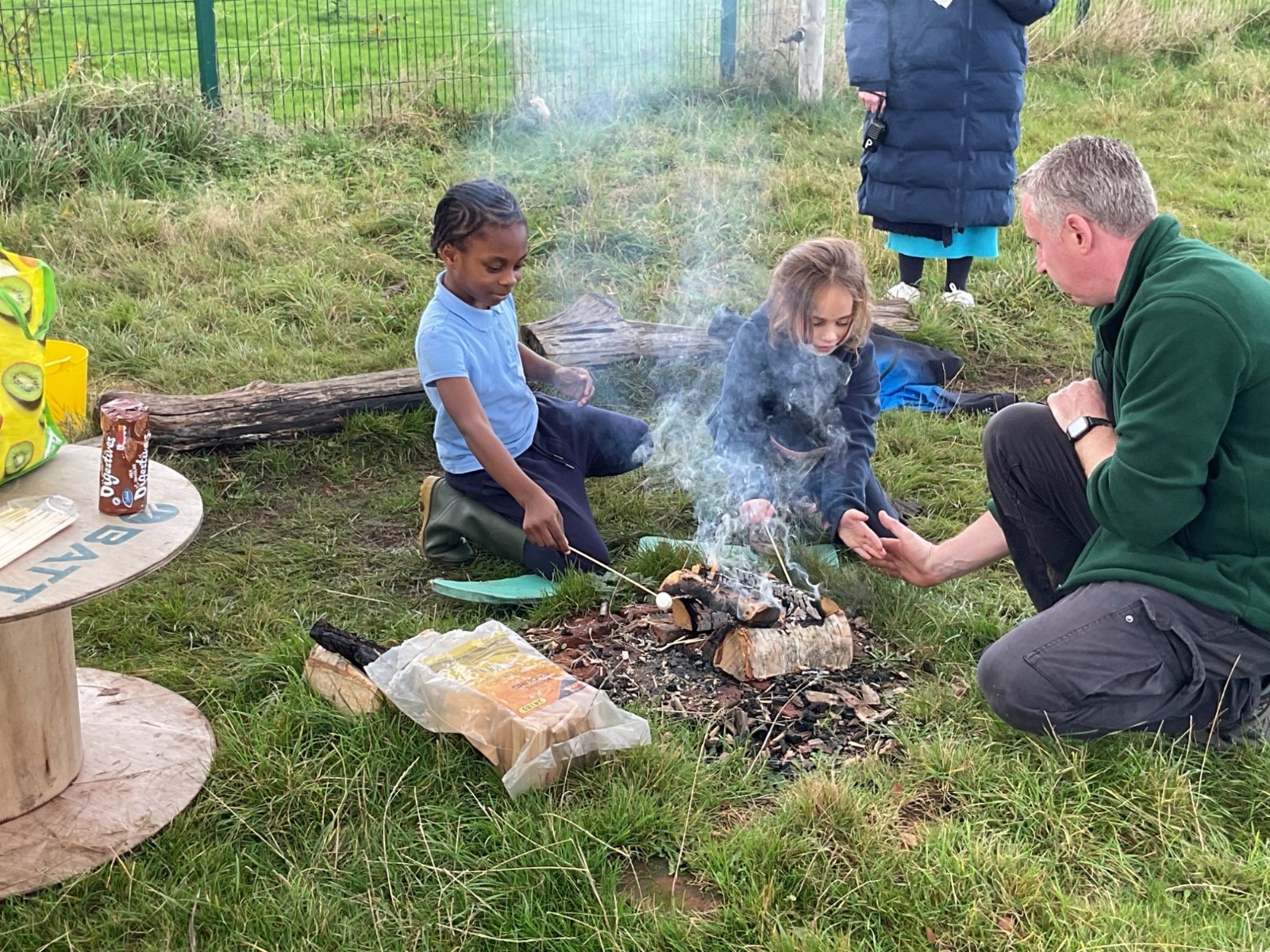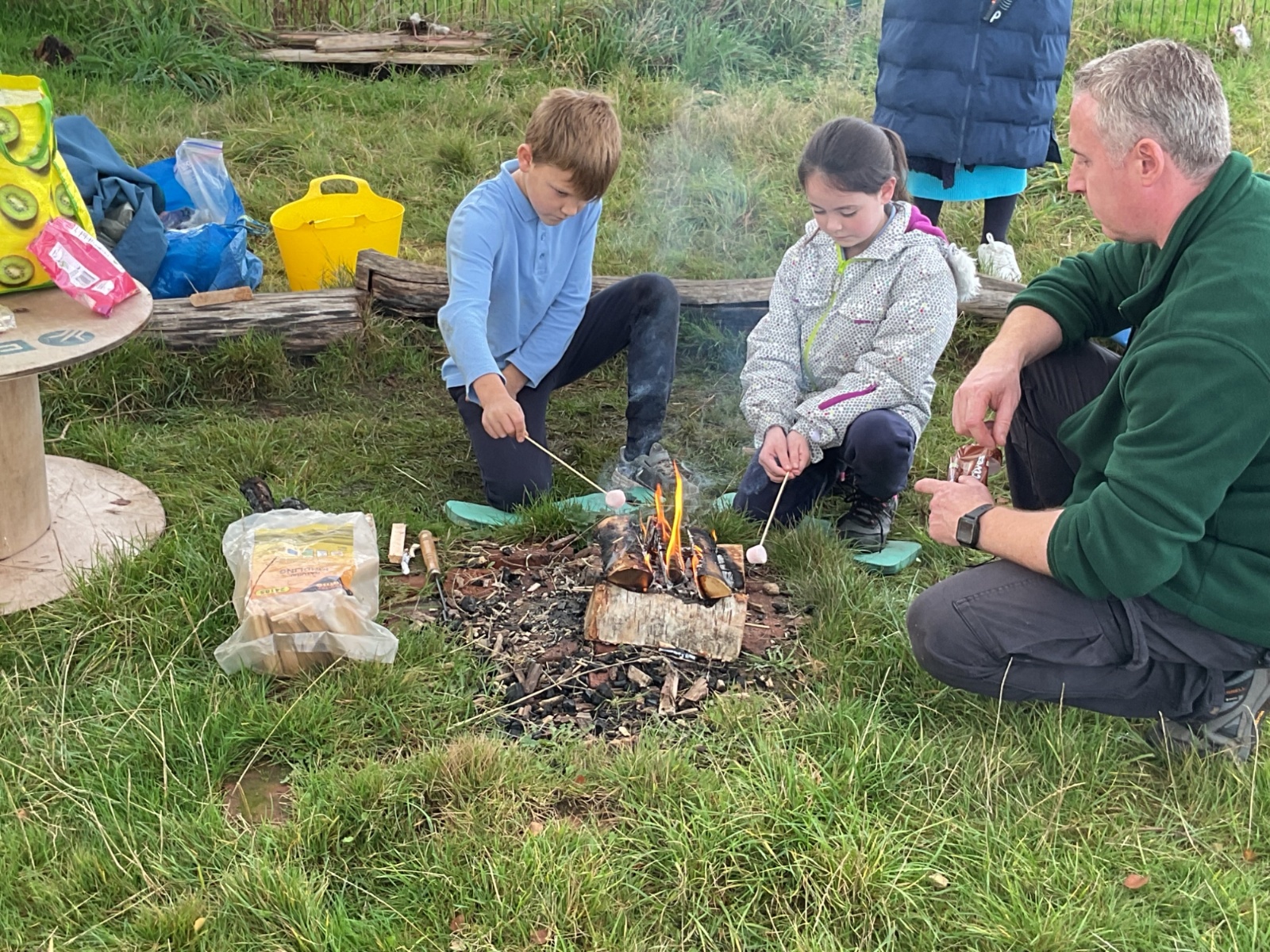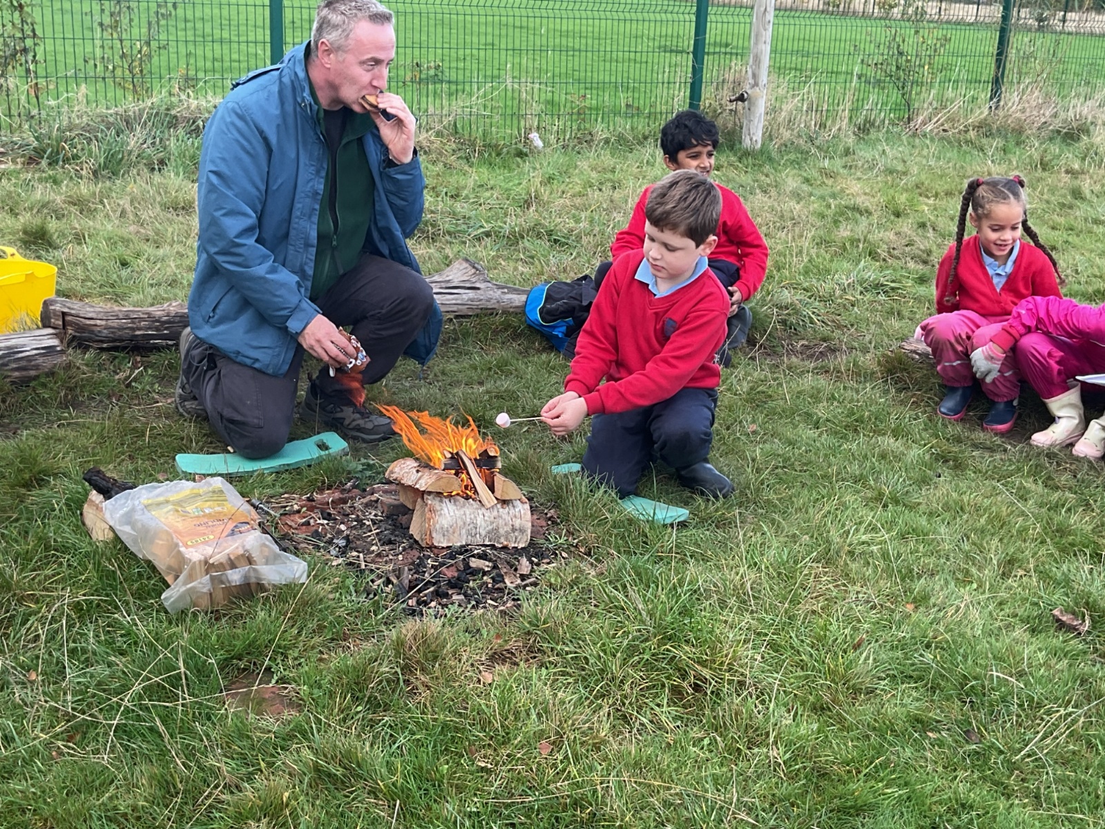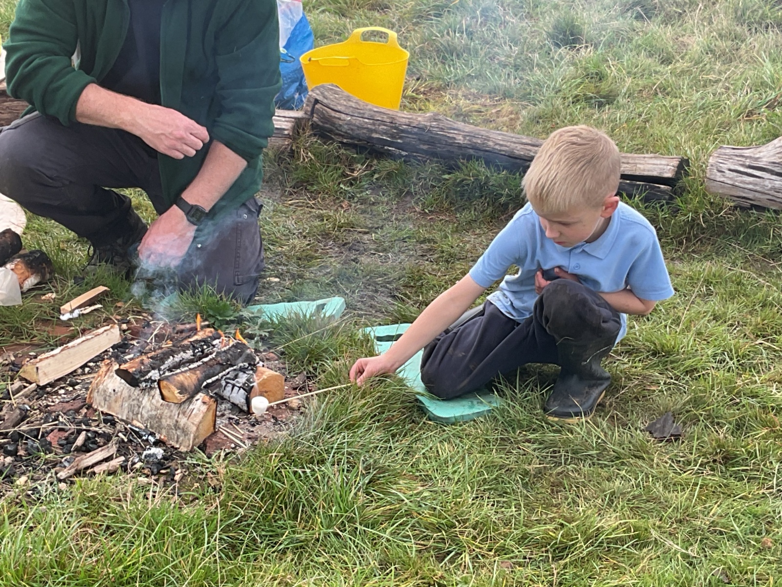 In Forest School, the children thoroughly enjoyed playing games with a parachute, den building and roasting marshmallows over a fire.