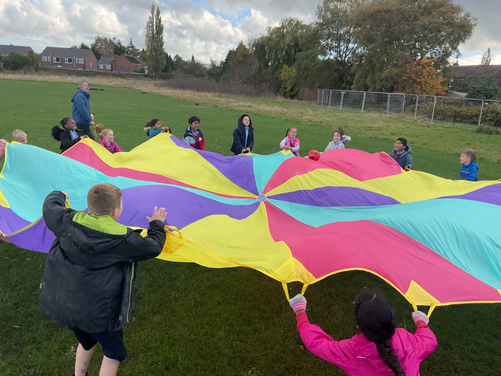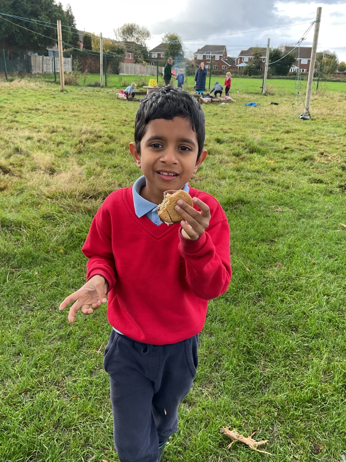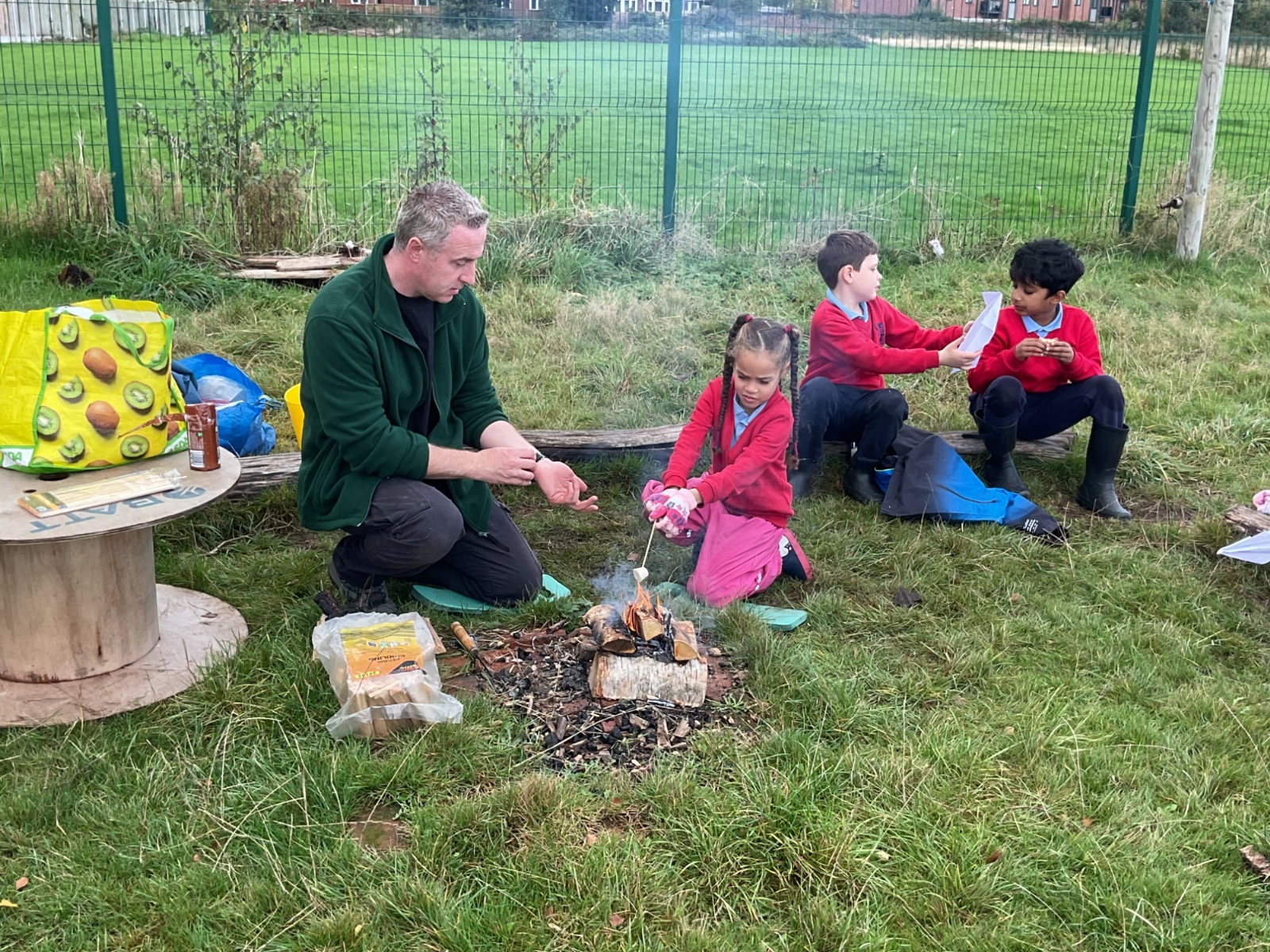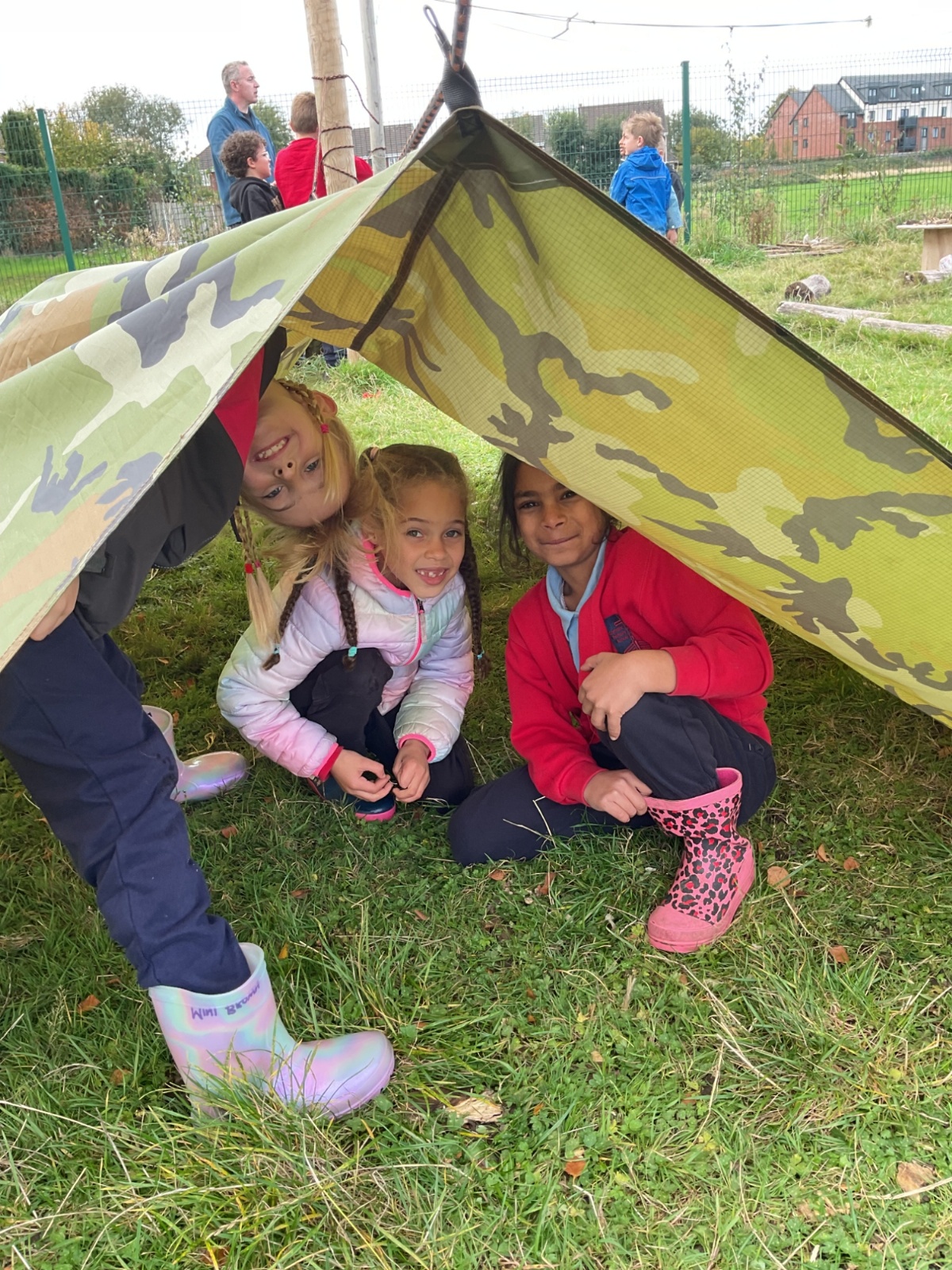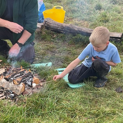 In Forest School, the children thoroughly enjoyed playing games with a parachute, den building and roasting marshmallows over a fire.