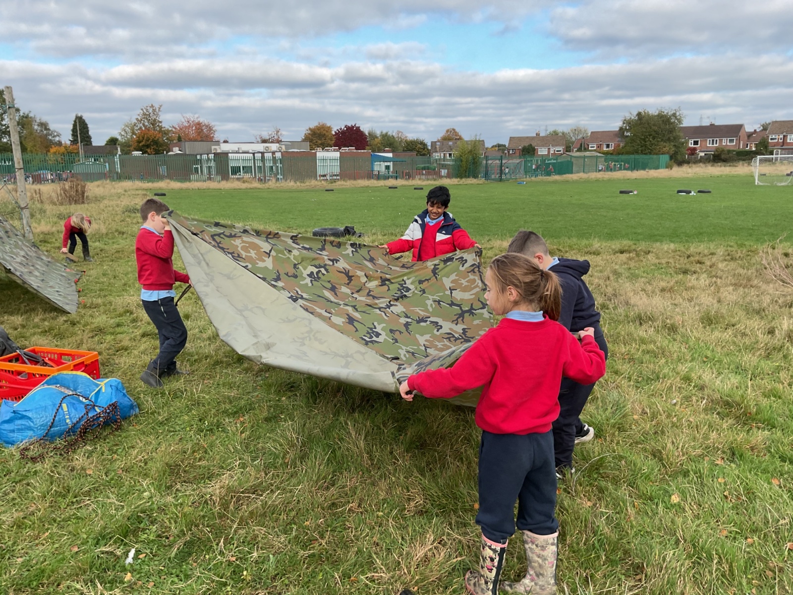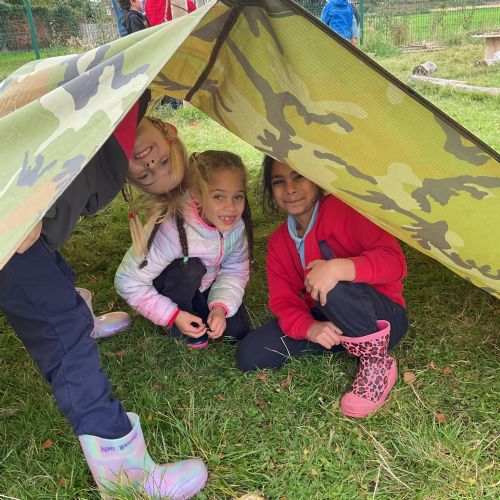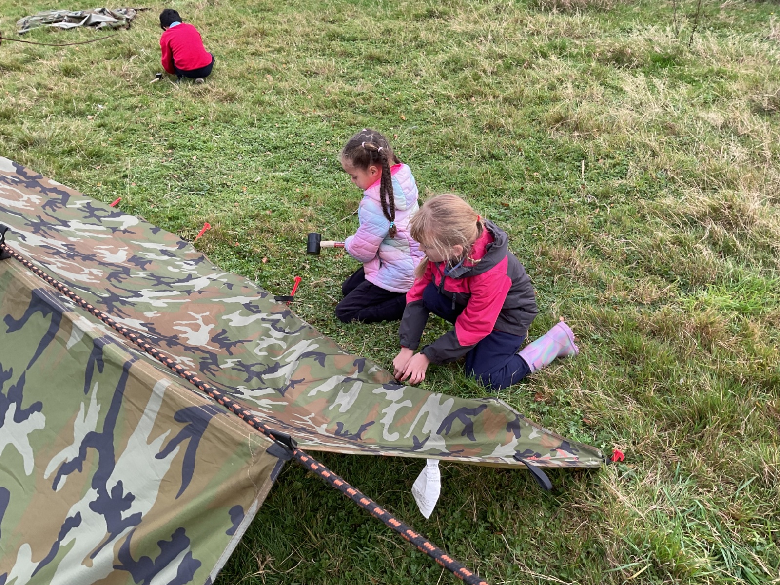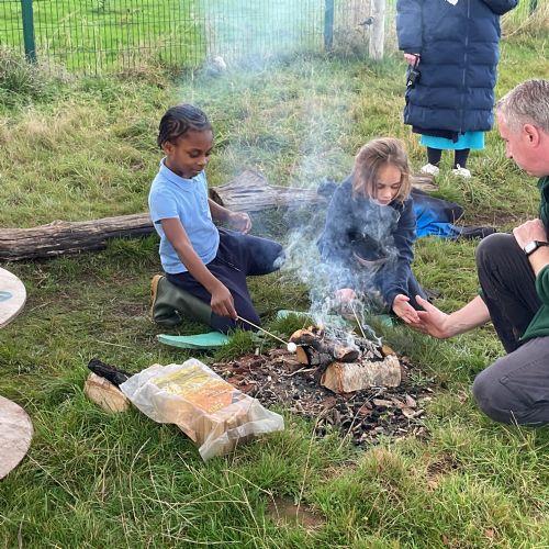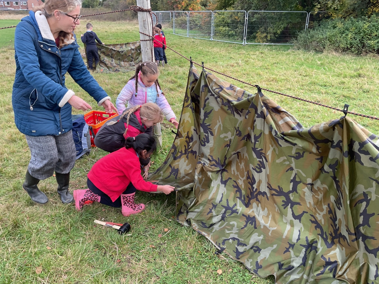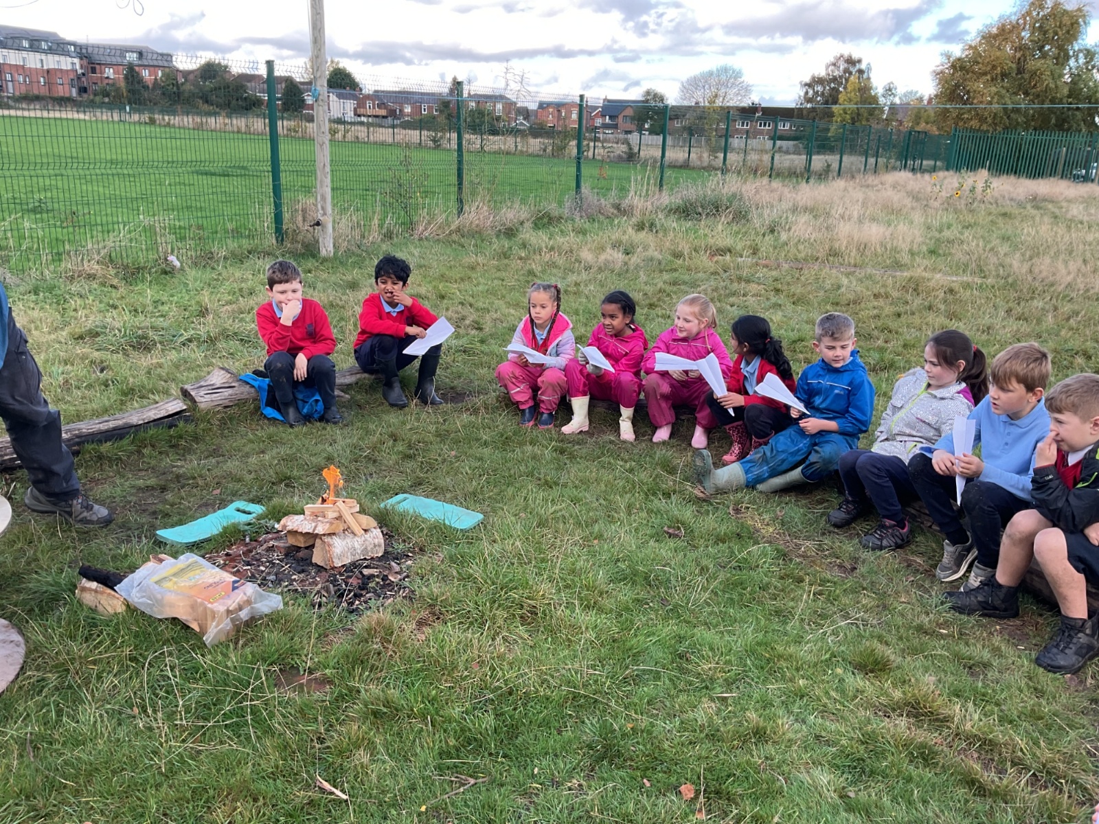 In Forest School, the children thoroughly enjoyed playing games with a parachute, den building and roasting marshmallows over a fire.
