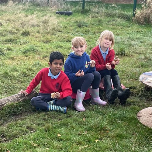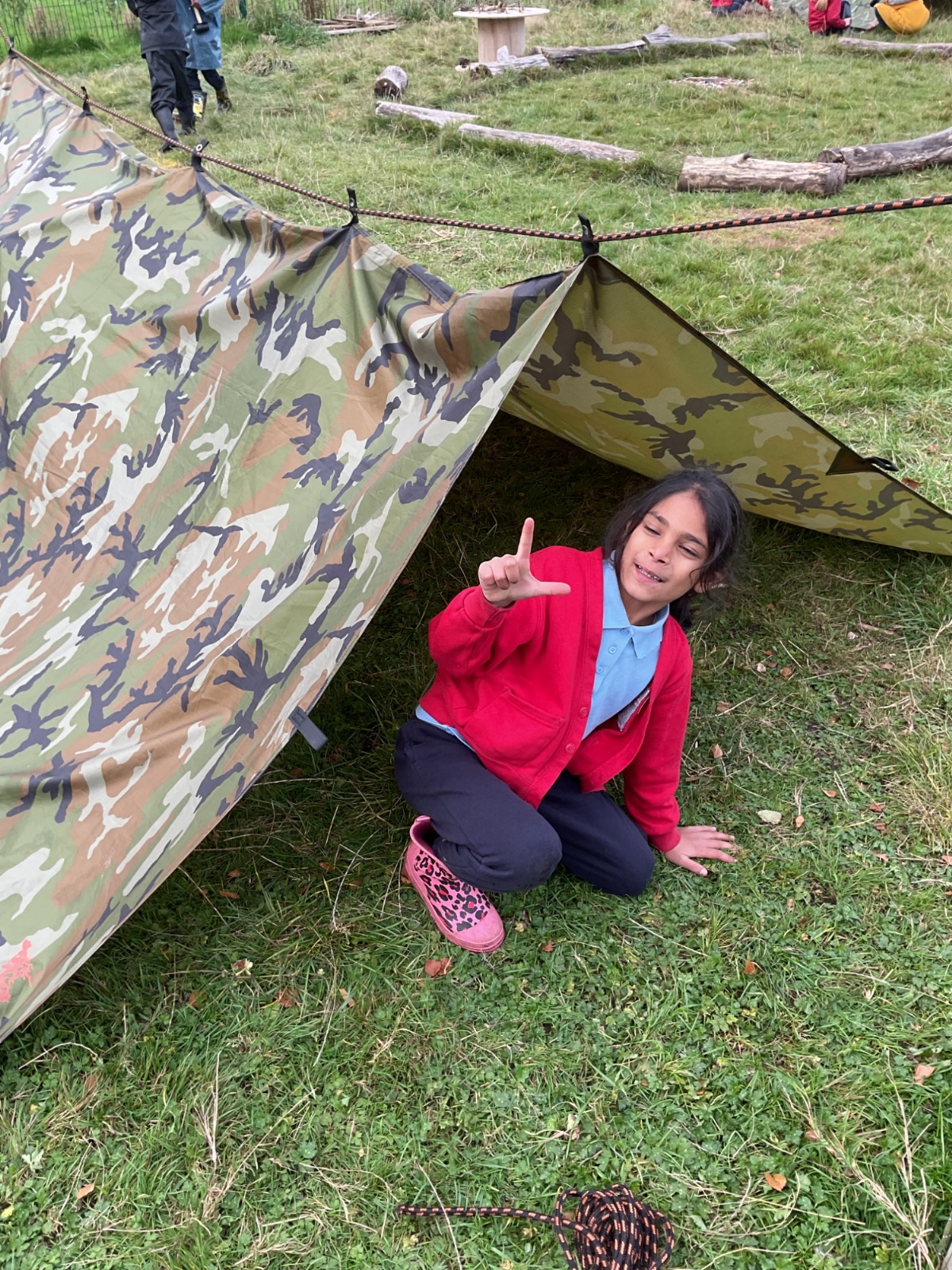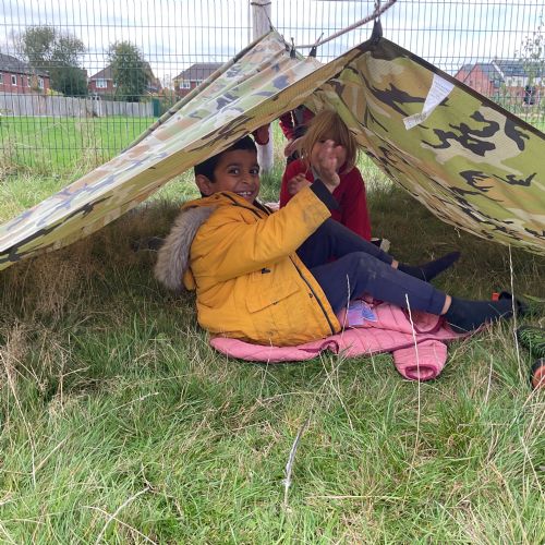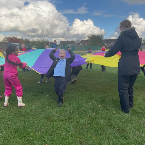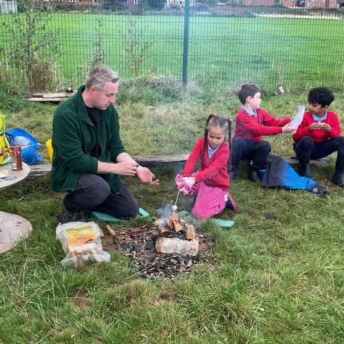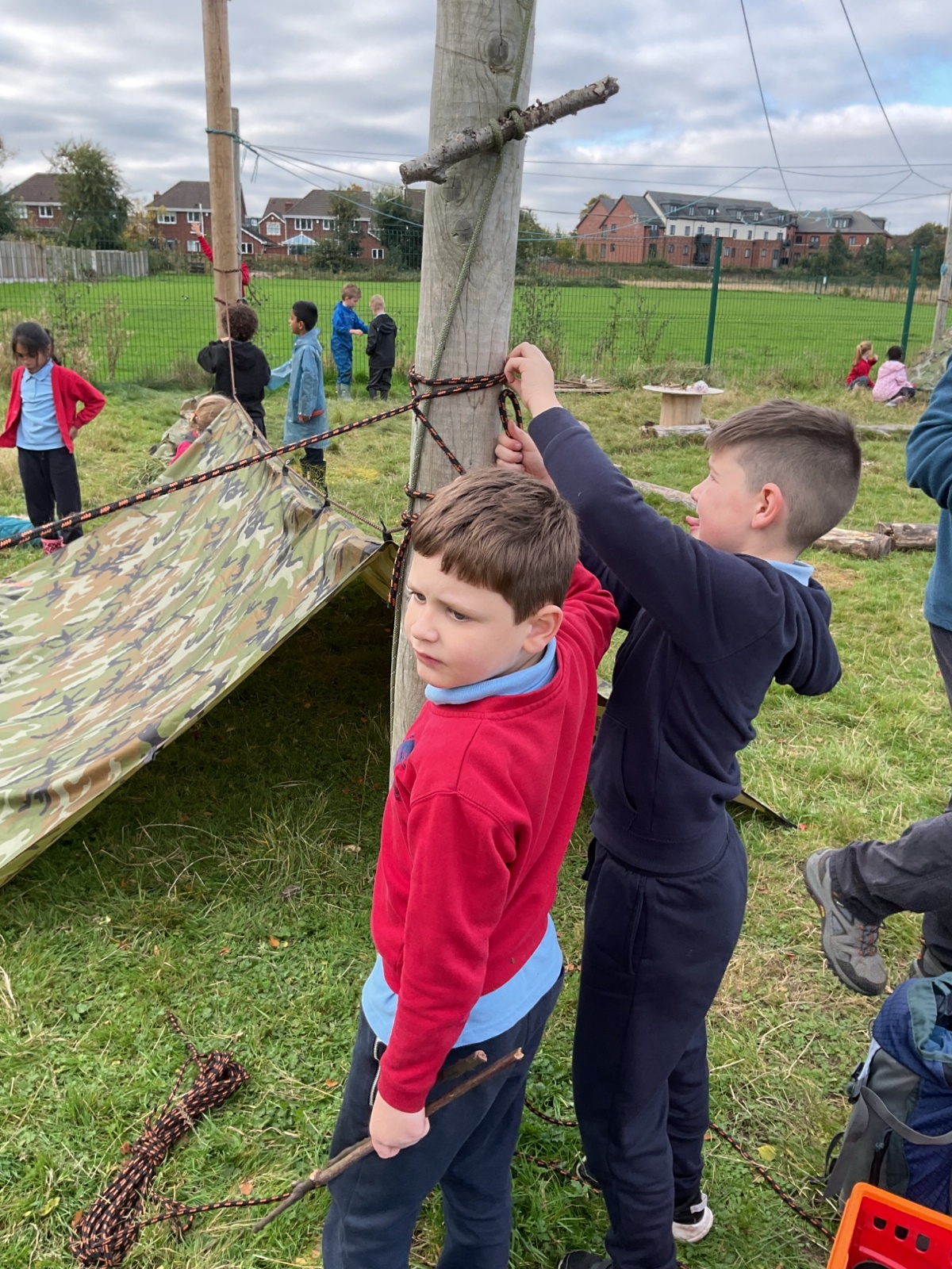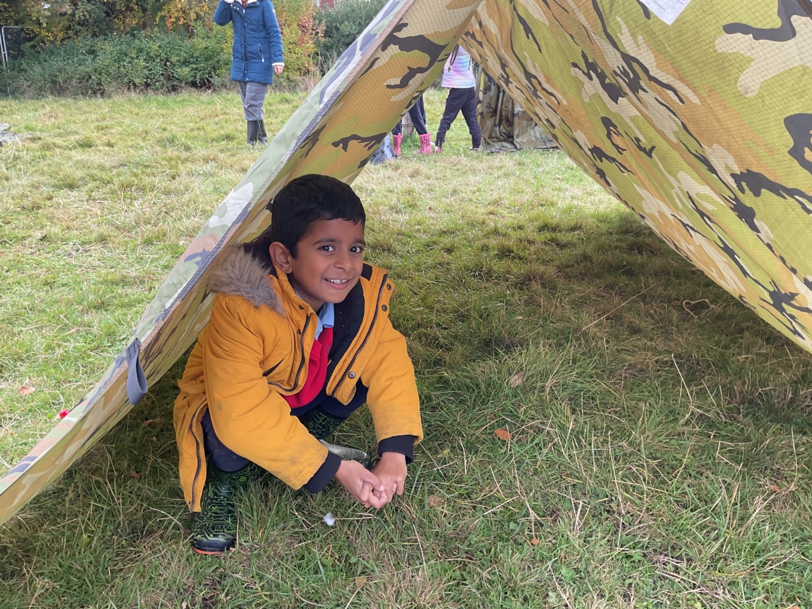 In Forest School, the children thoroughly enjoyed playing games with a parachute, den building and roasting marshmallows over a fire.
