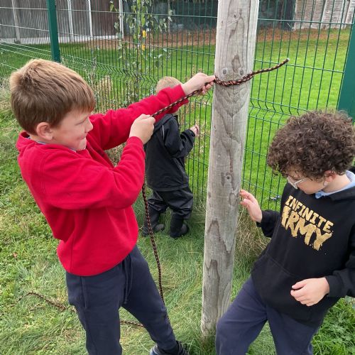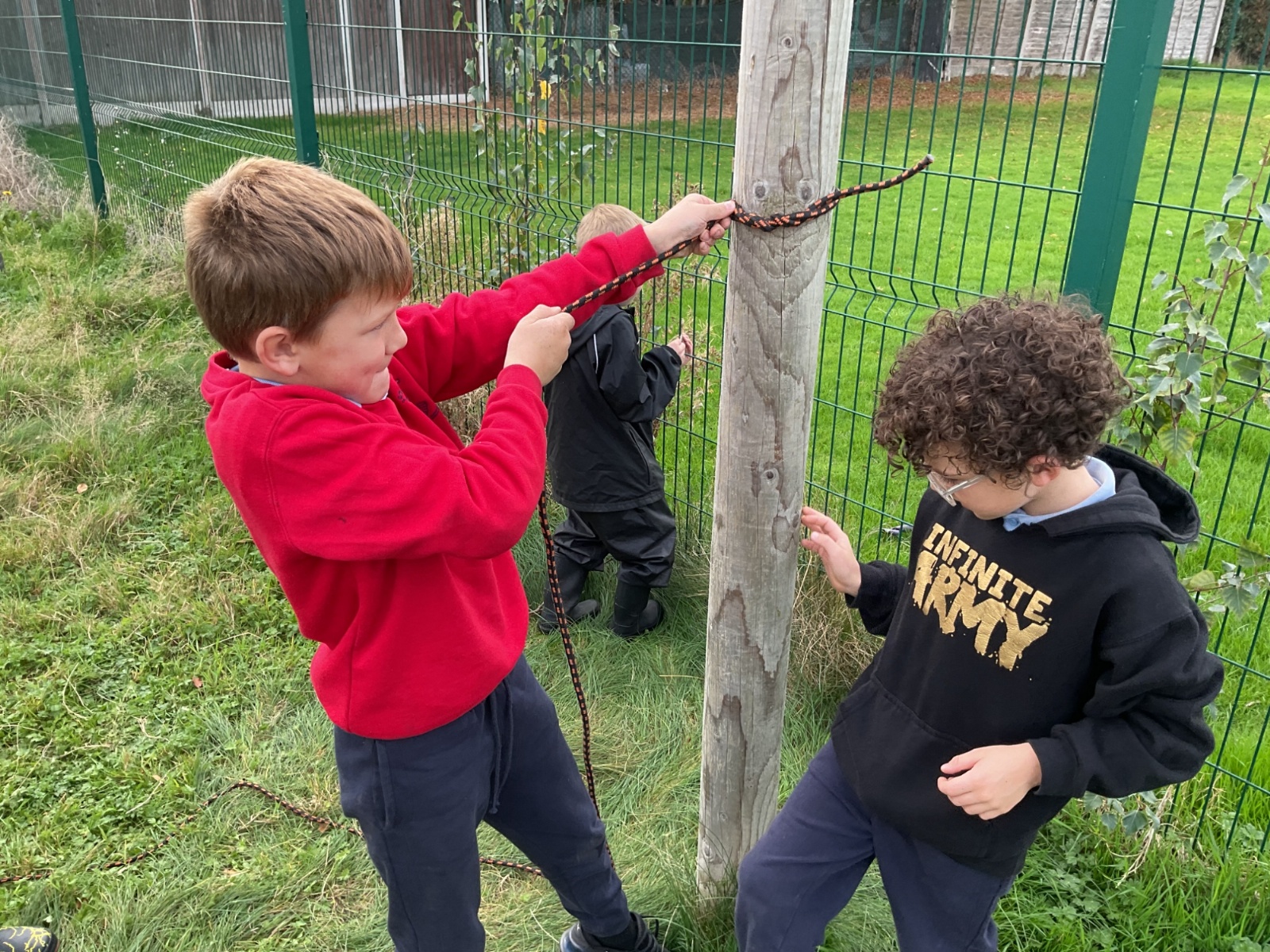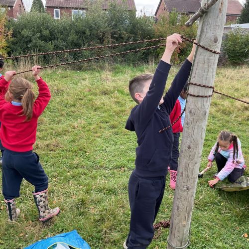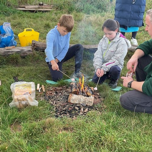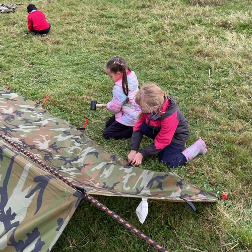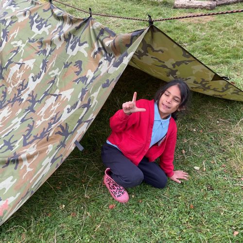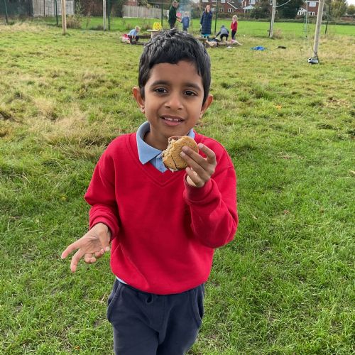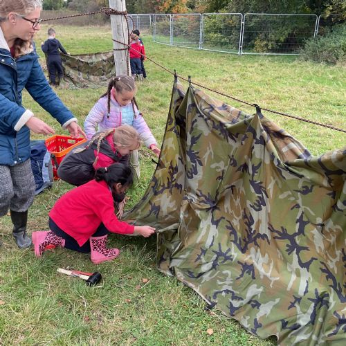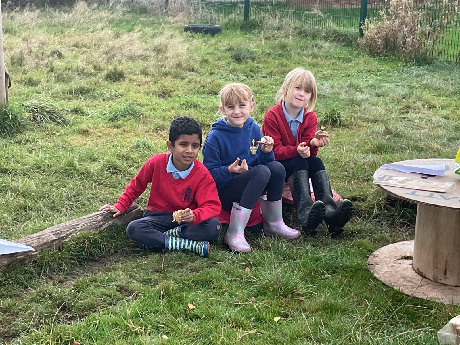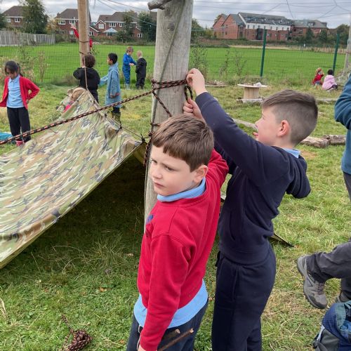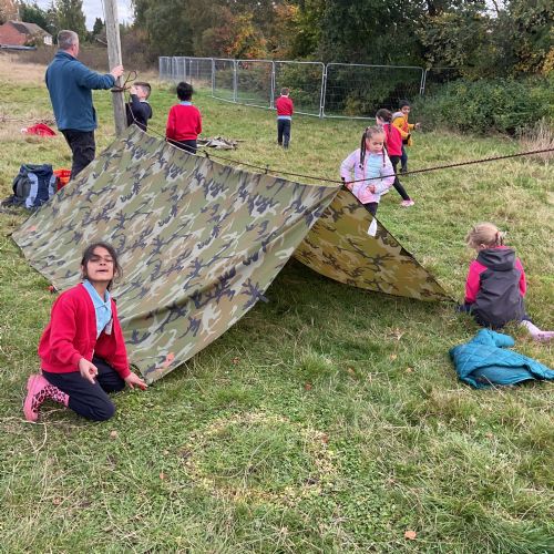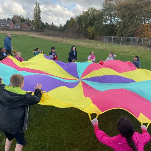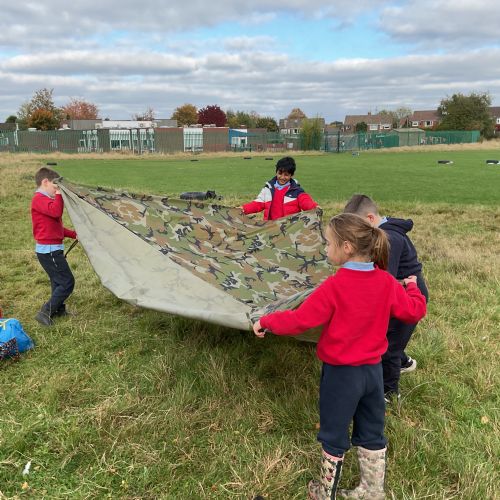 In Forest School, the children thoroughly enjoyed playing games with a parachute, den building and roasting marshmallows over a fire.