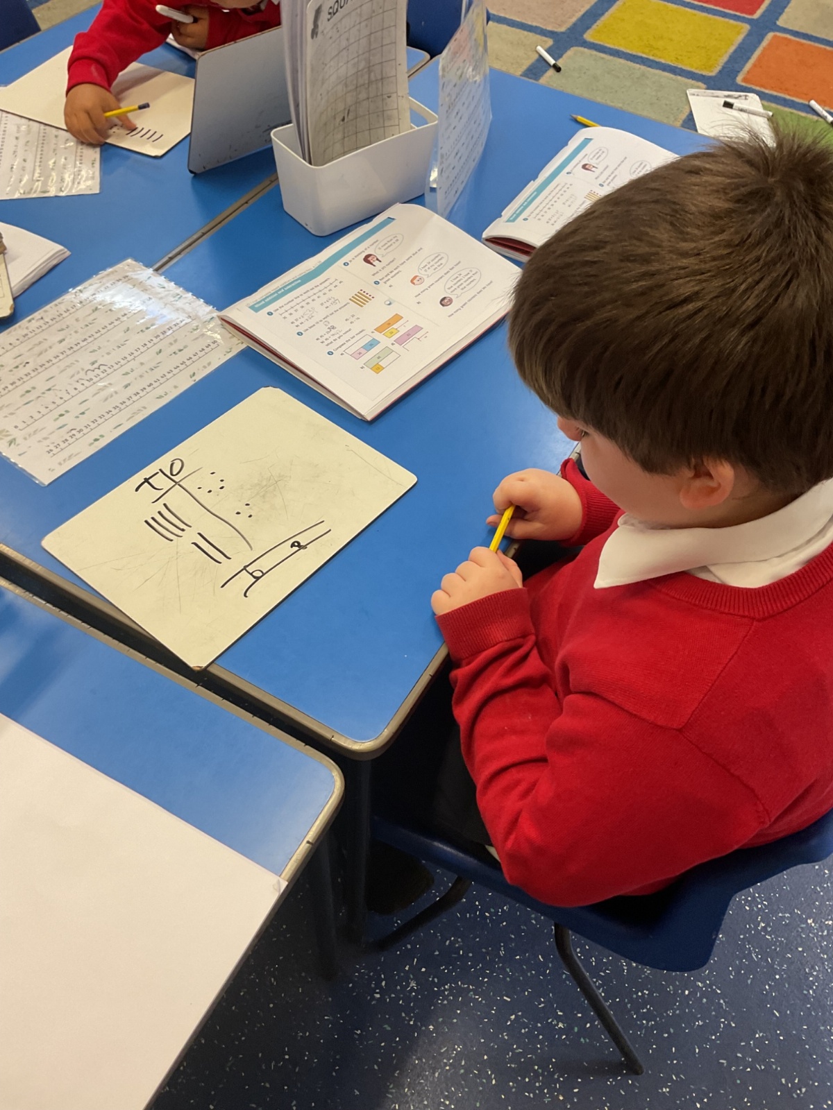 In maths we have been looking at addition and subtraction, using different methods to make it more efficient. One method we used was drawing our tens and ones using 'base ten' as a pictorial reference.