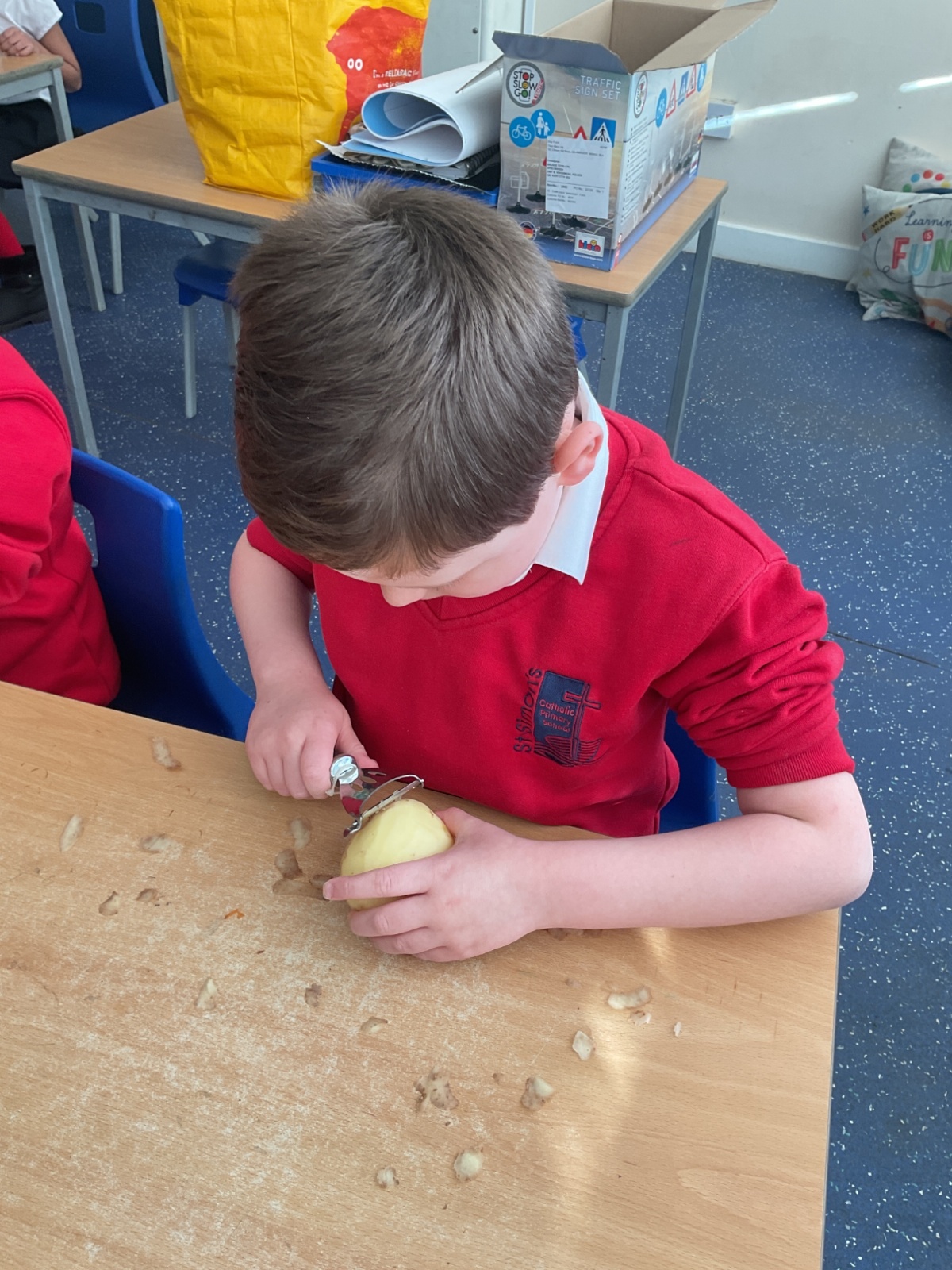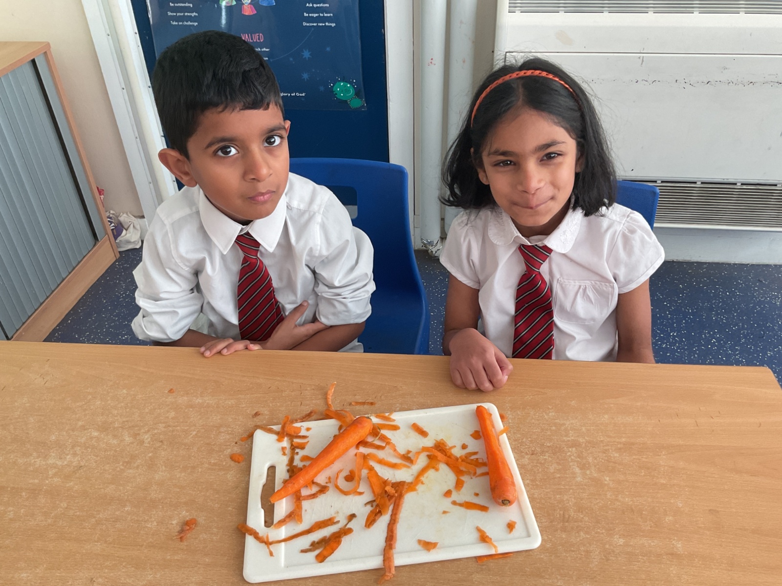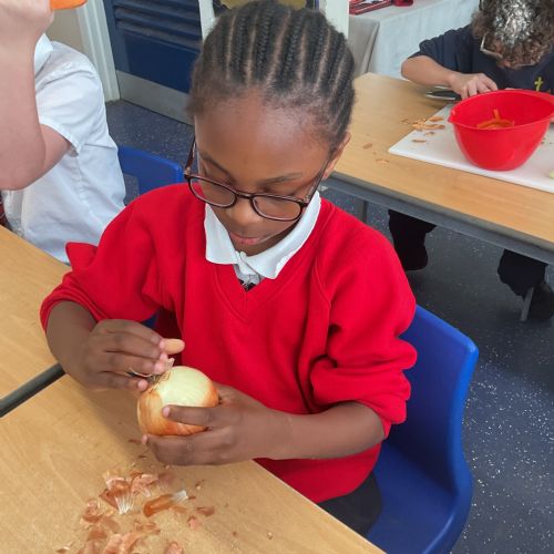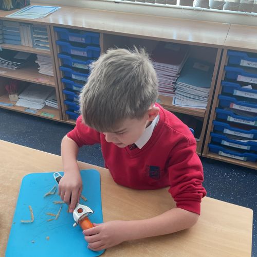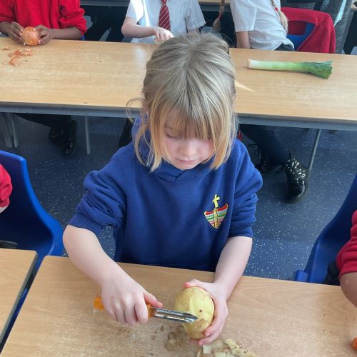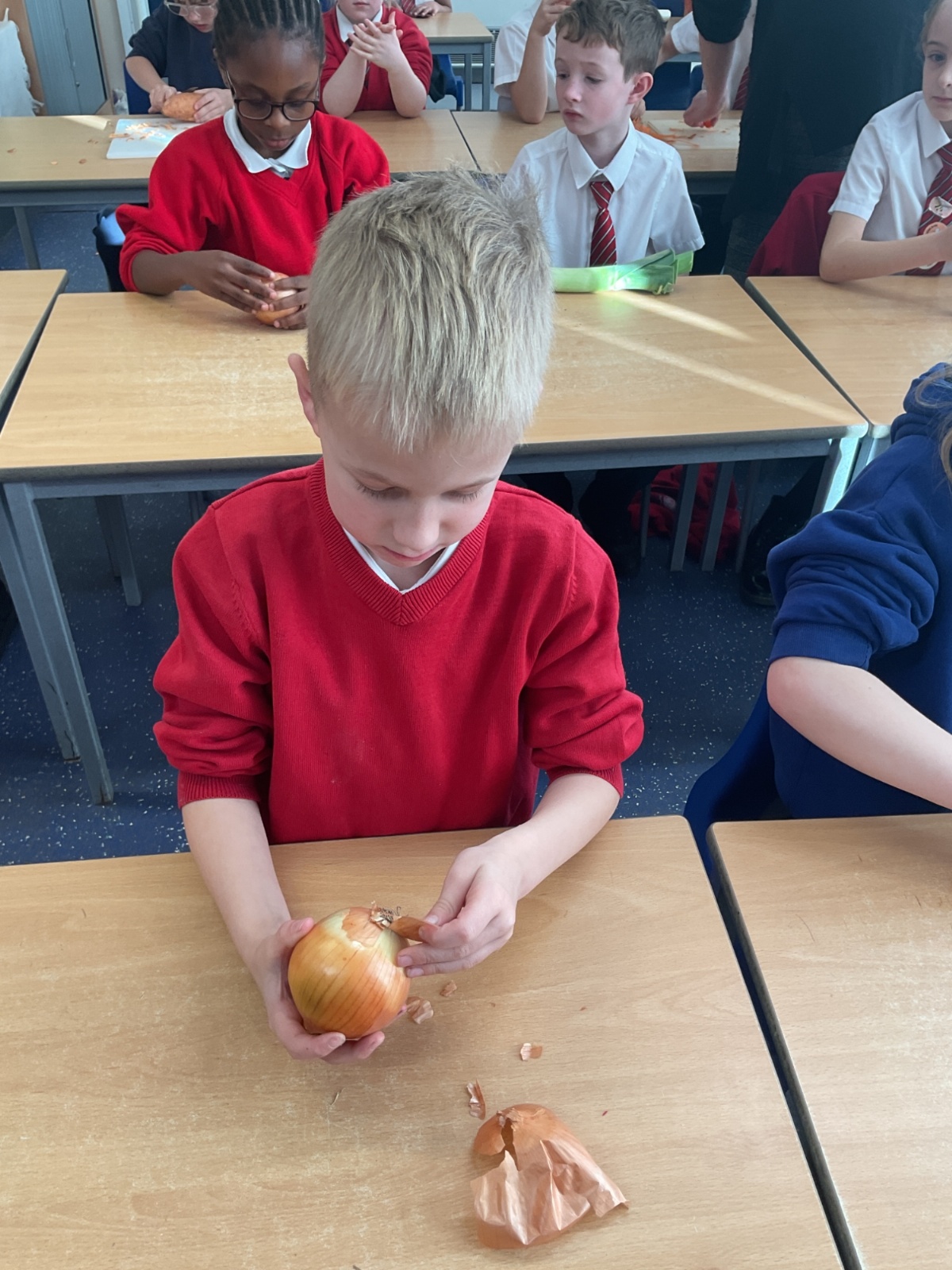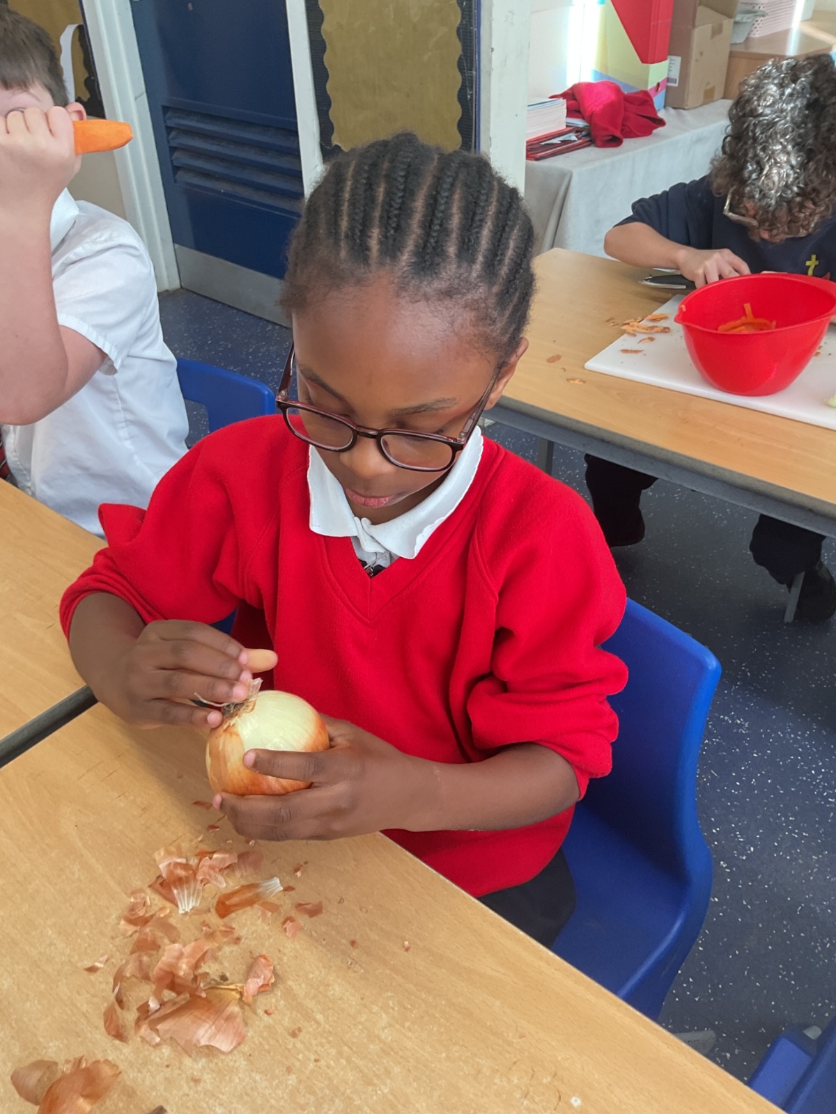 In D&T this week, Year 3 used their plans to use ingredients and tools to make a vegetable soup. The children thoroughly enjoyed working as a team to chop the vegetables. After it had been cooked, the children were excited to sit down together and eat their soup with some crusty bread. Many of the children had extra portions because they enjoyed it so much!