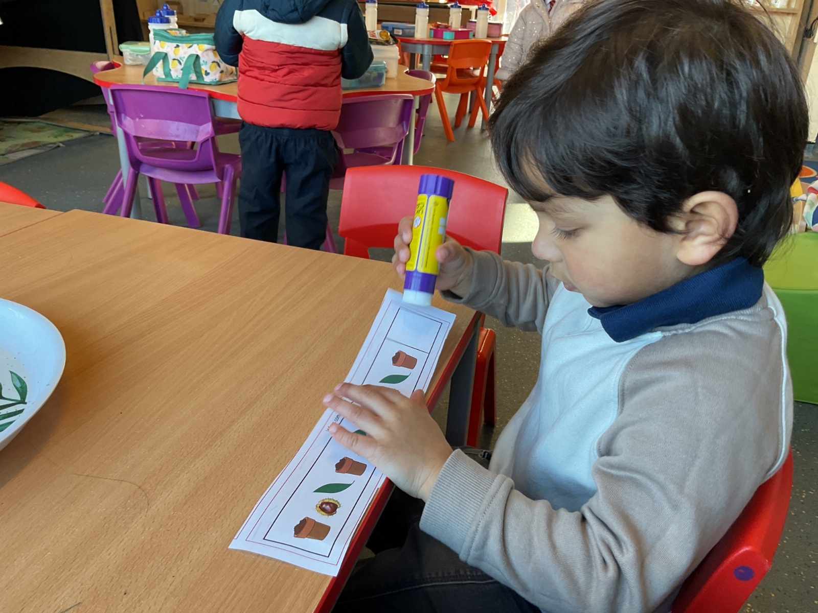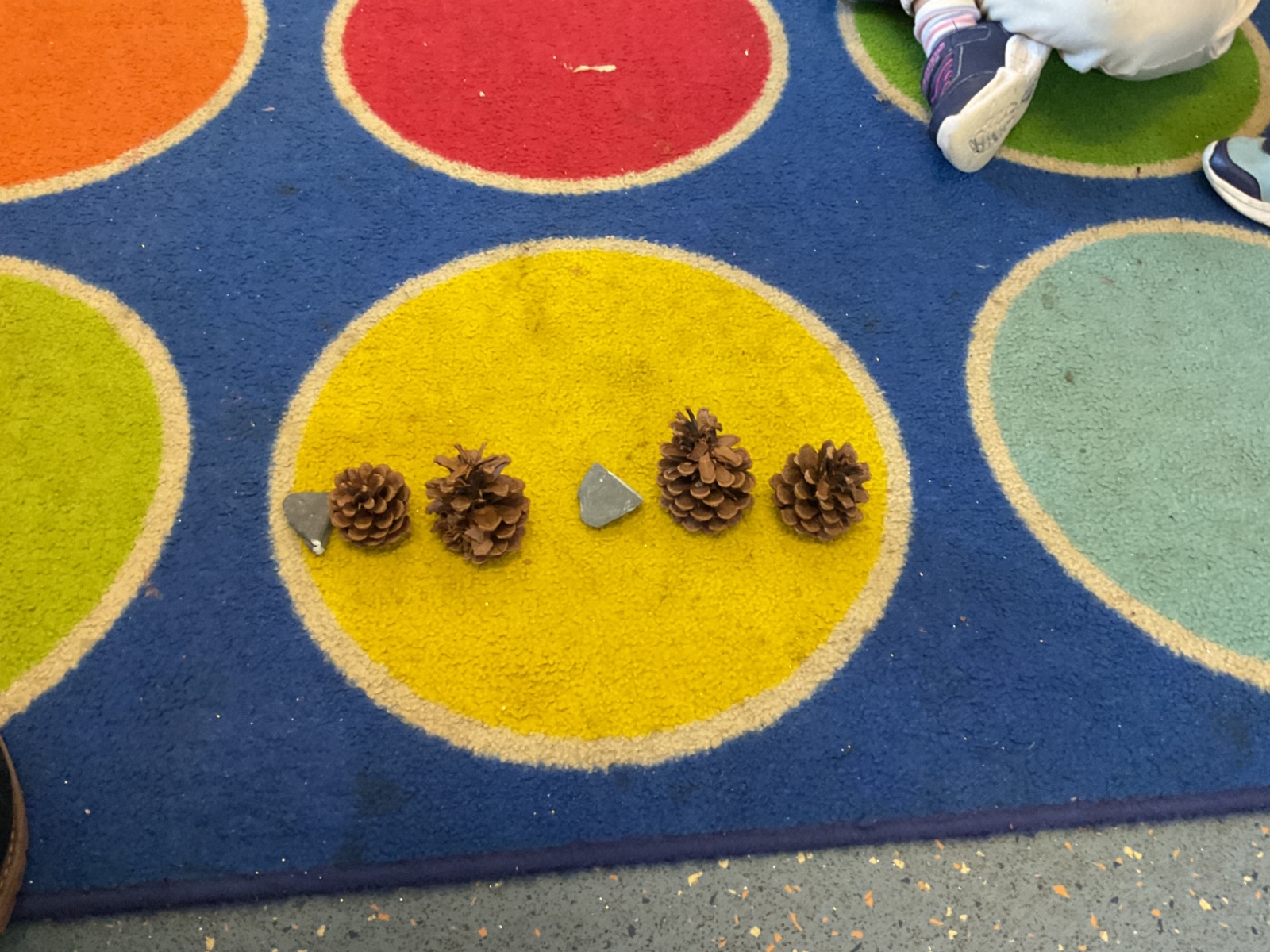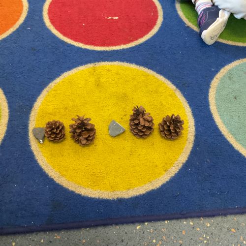 In maths, we further developed our understanding of patterns by learning ABCABC sequences using blocks, and natural materials. We practised identifying the three repeating items and predicting what comes next. We looked at and fixed a broken "mistake" in a pattern and challenged the children to spot the error and fix it, explaining why it was wrong and how to make it right.