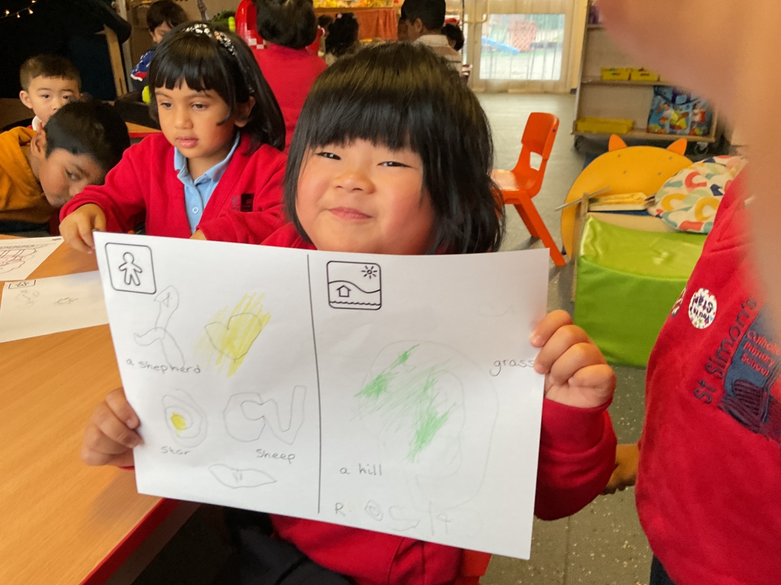 This week in RE our learning was centred around the Christmas story, focusing specifically on the dramatic moment the angel visited the shepherds. We explored who the shepherds were, where they were sleeping, and their reaction to seeing the angel. We discussed big feelings like surprise and wonder.
