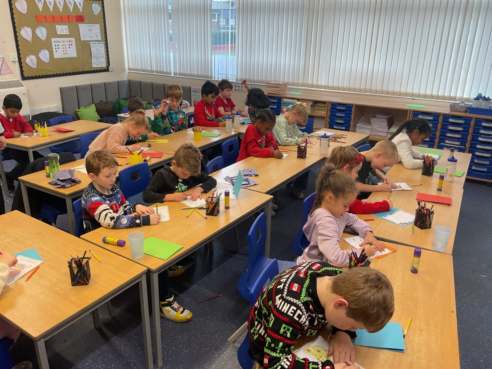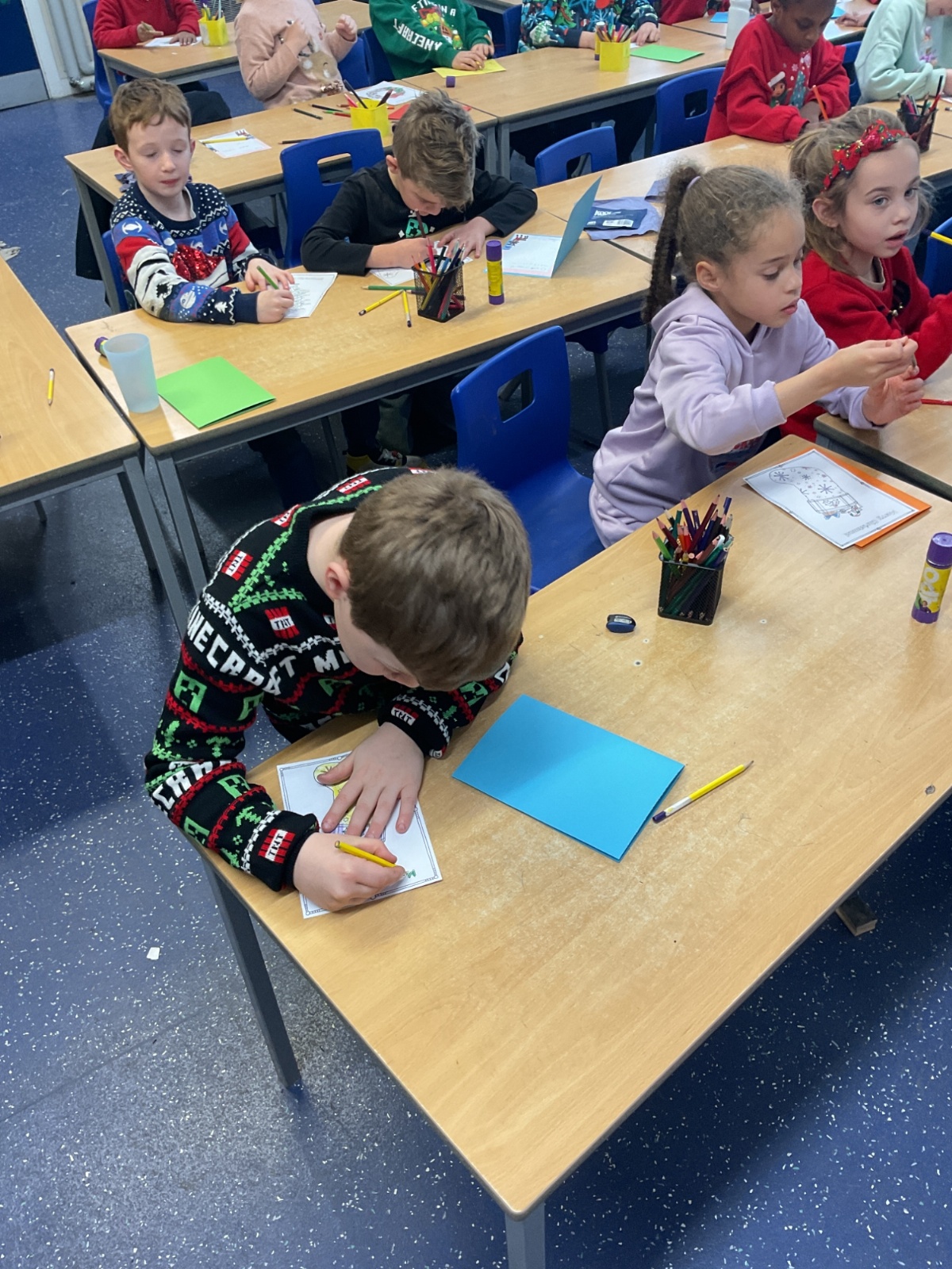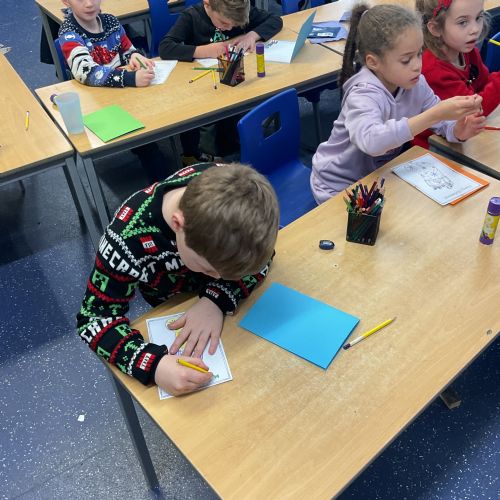 On Friday this week, we celebrated 'Save the Children's' Christmas Jumper Day at school. In the afternoon, we stuck to the Christmas theme by making Christmas cards for our local care home, which the school choir will deliver when they go to carol sing for their residents next week.