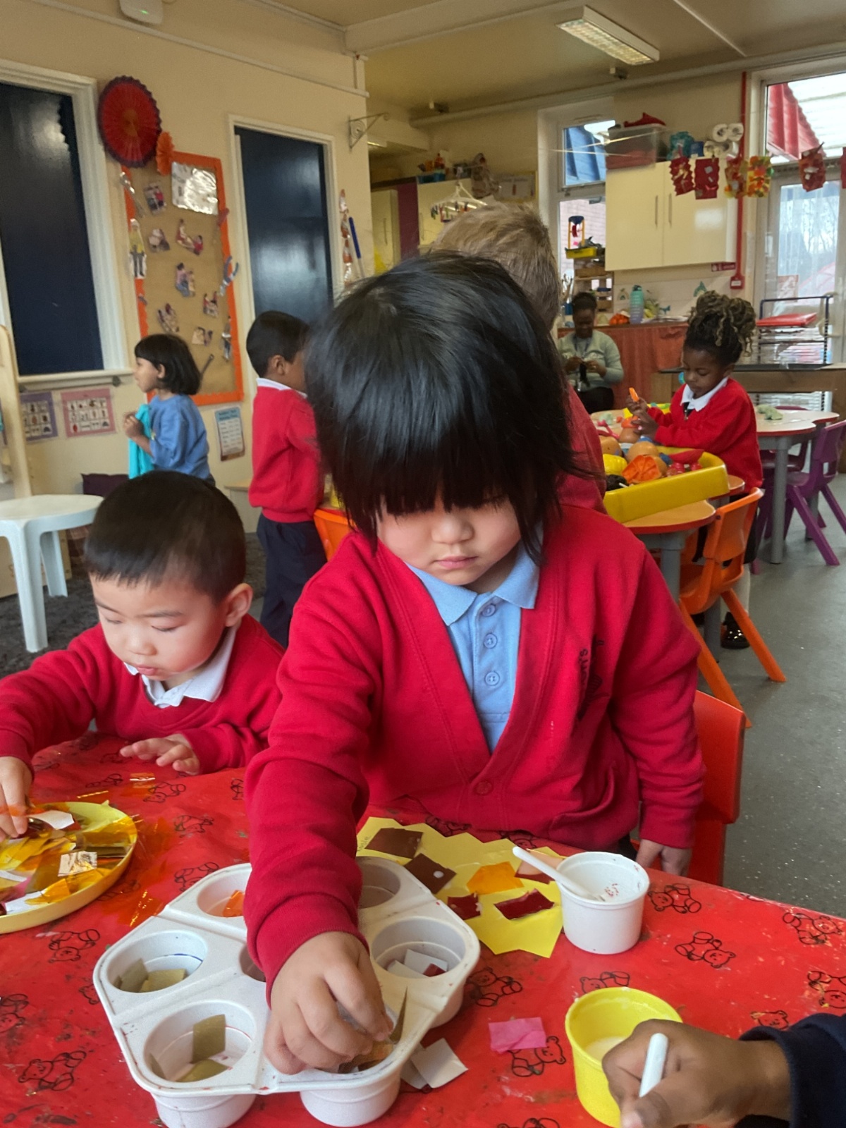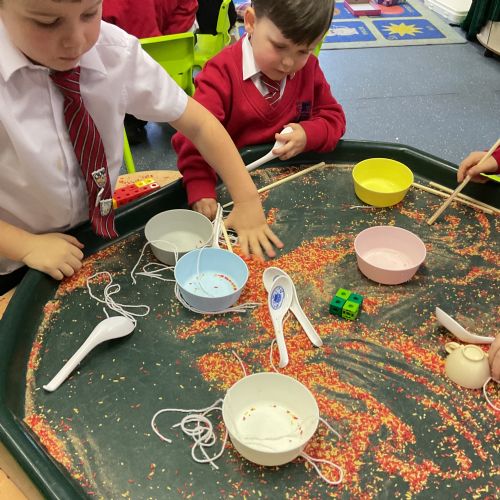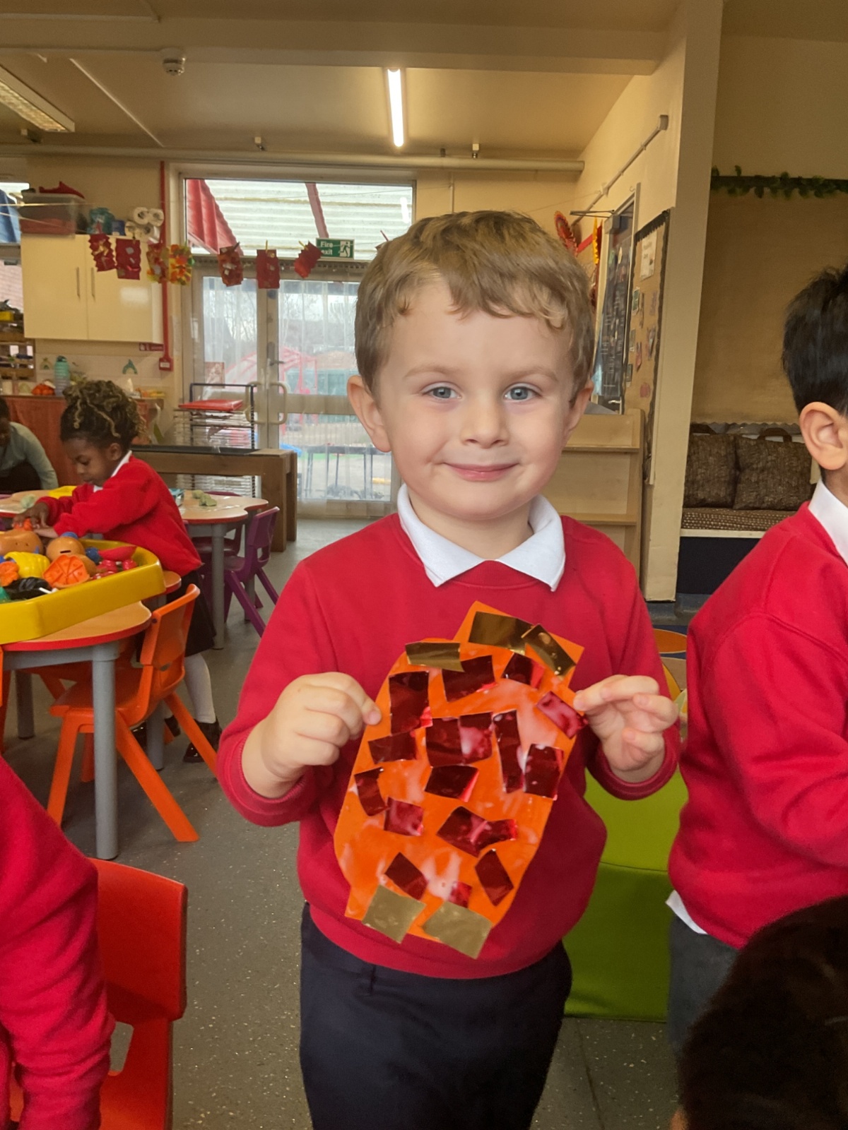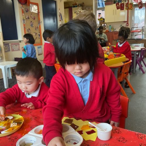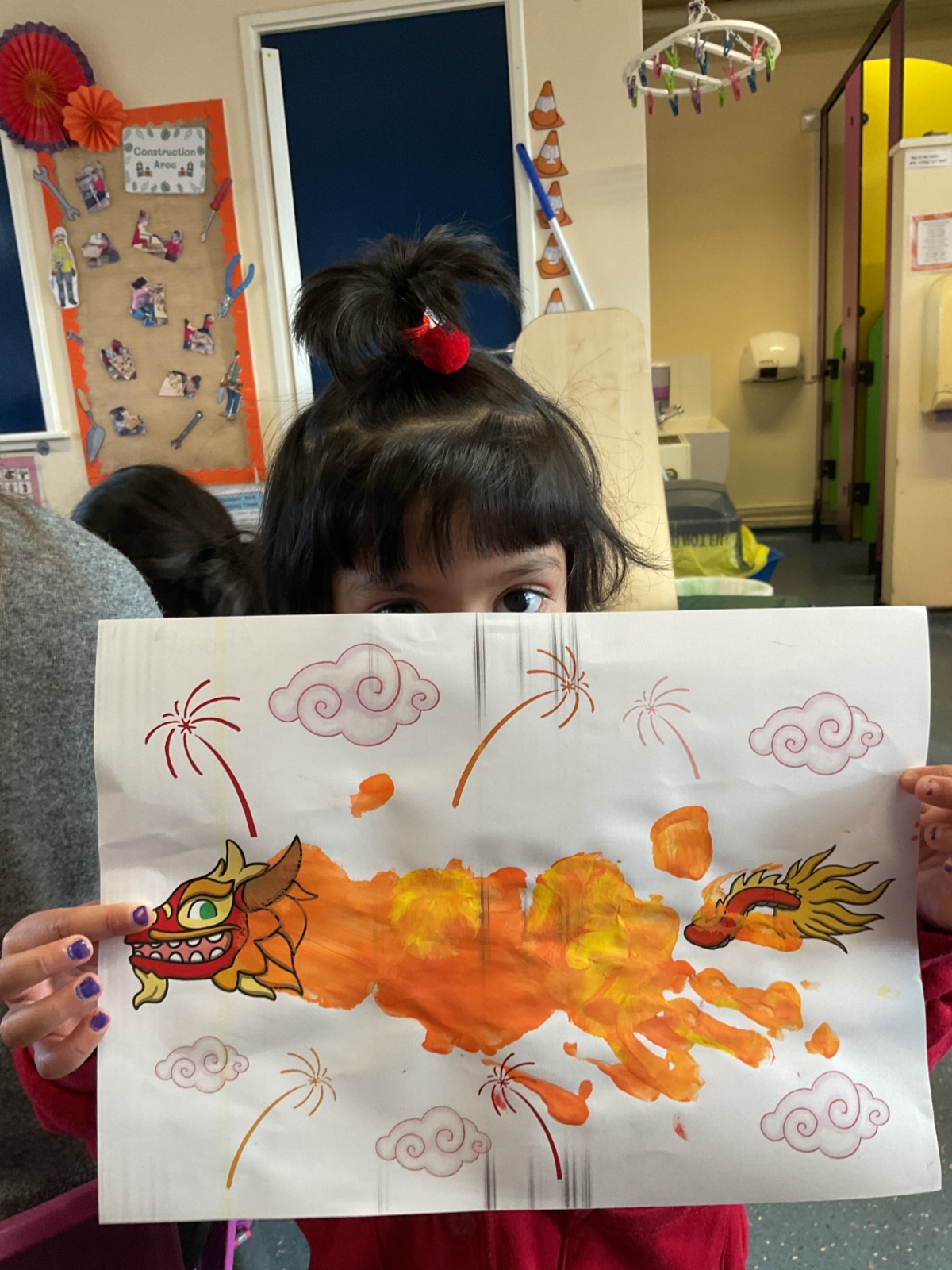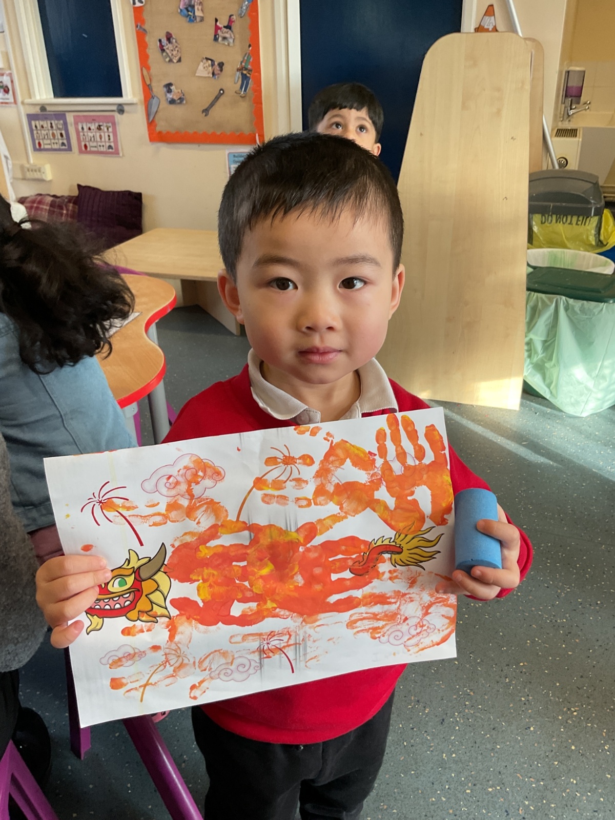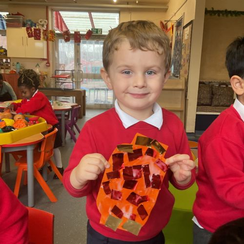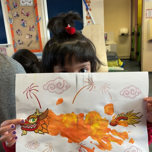 This week we have been celebrating Chinese New Year. We made some dragons, lanterns and cards. We listened to the story about 'The Race', we watched a dragon dance too.