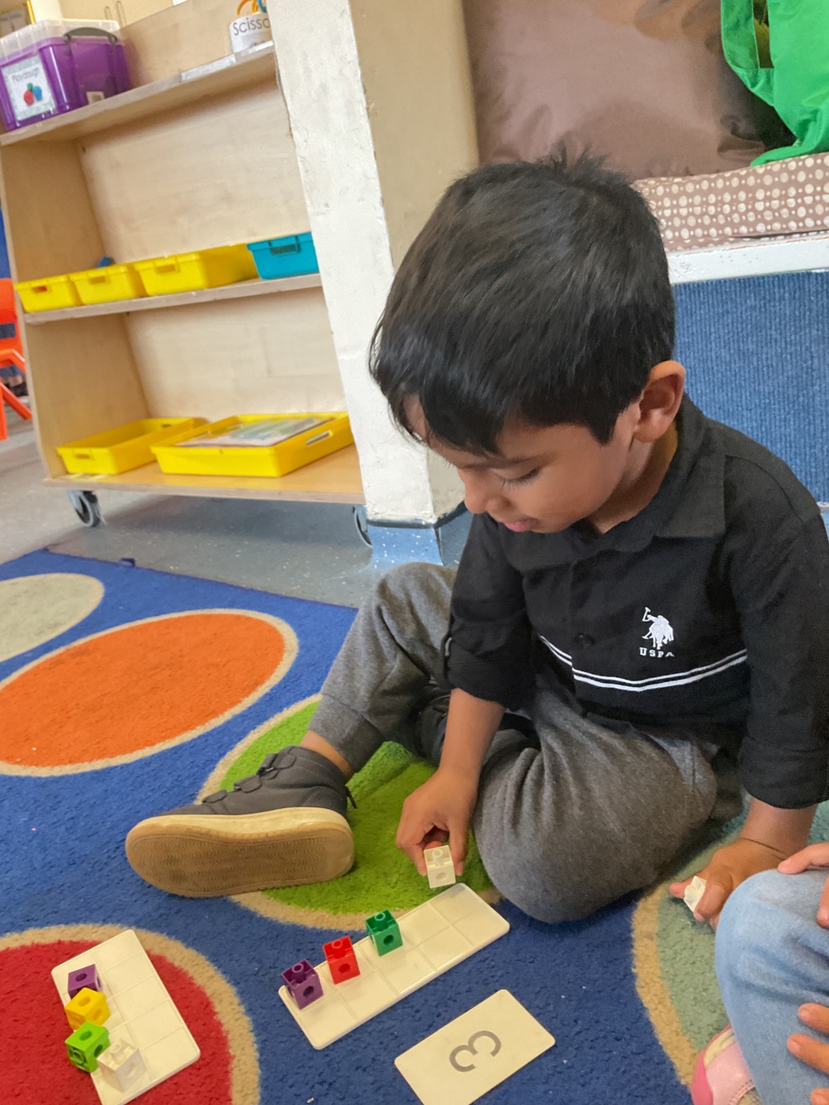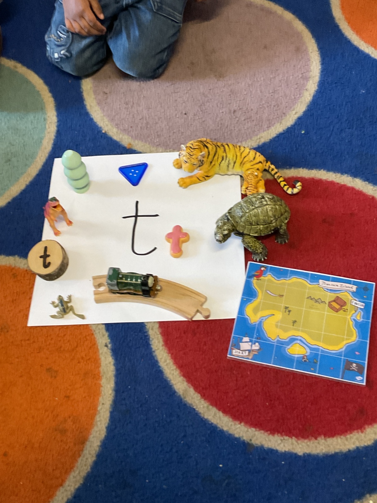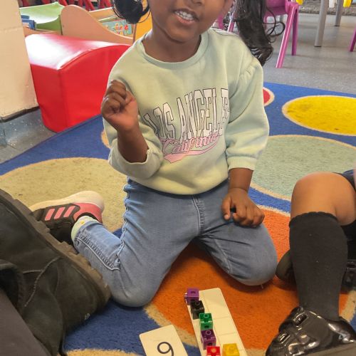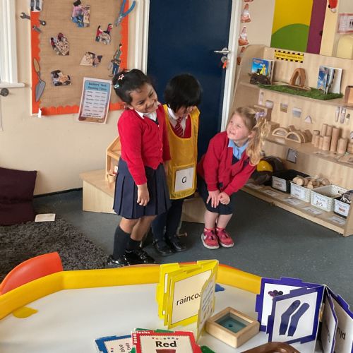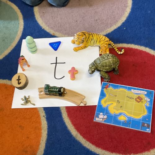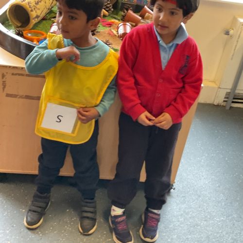 In maths, we have been learning about the number 6. We can count out 6 objects, match our fingers to numbers and put 6 onto a ten frame. We learnt the phoneme /t/, we looked at objects that began with /t/ and practised writing /s/a/ and /t/.