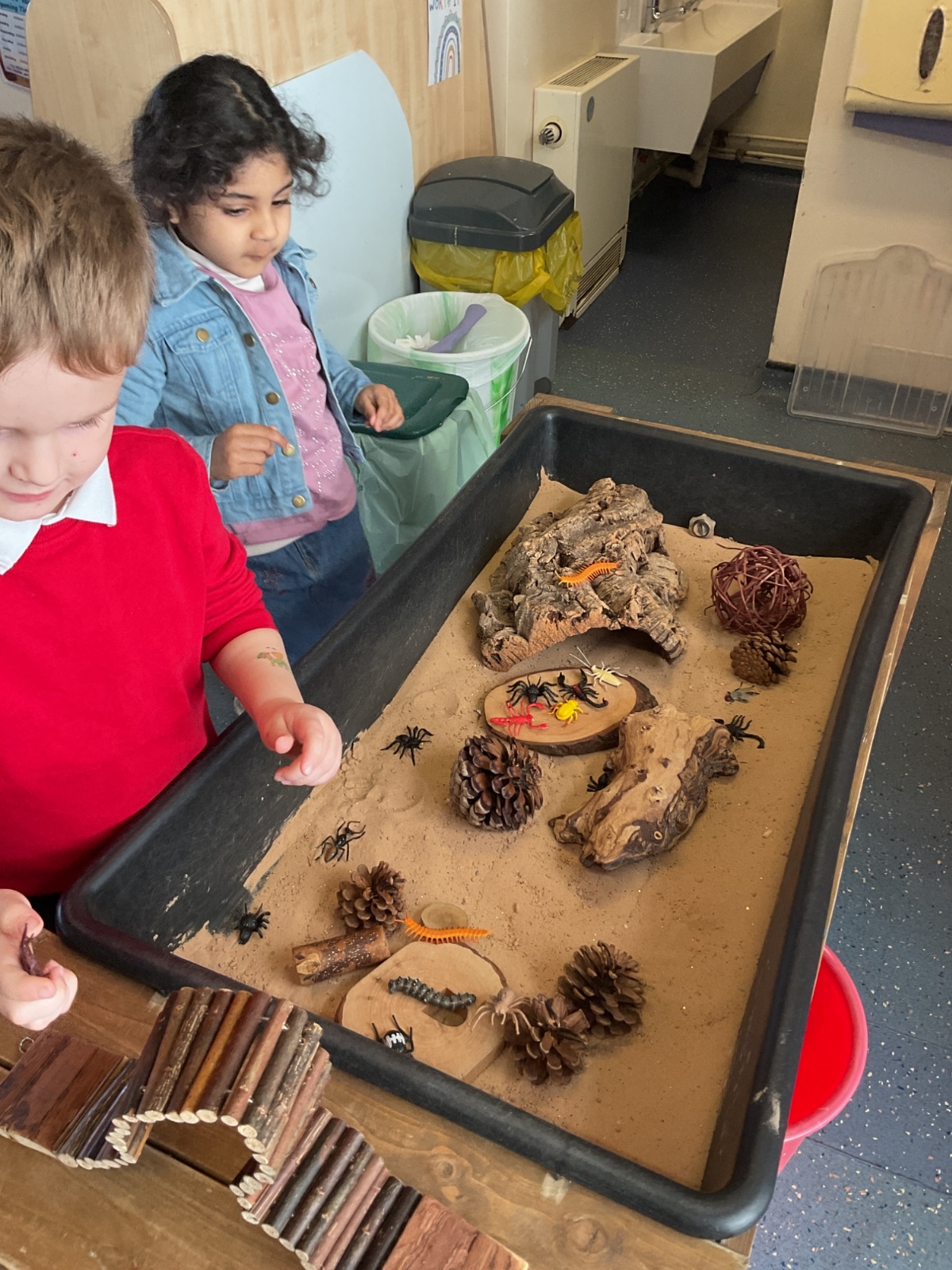 - Mini-beast Explorers: We’ve been investigating tiny garden friends in our small world area, using magnifying glasses to spot legs, wings, and antennae.