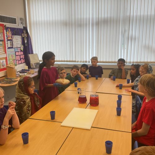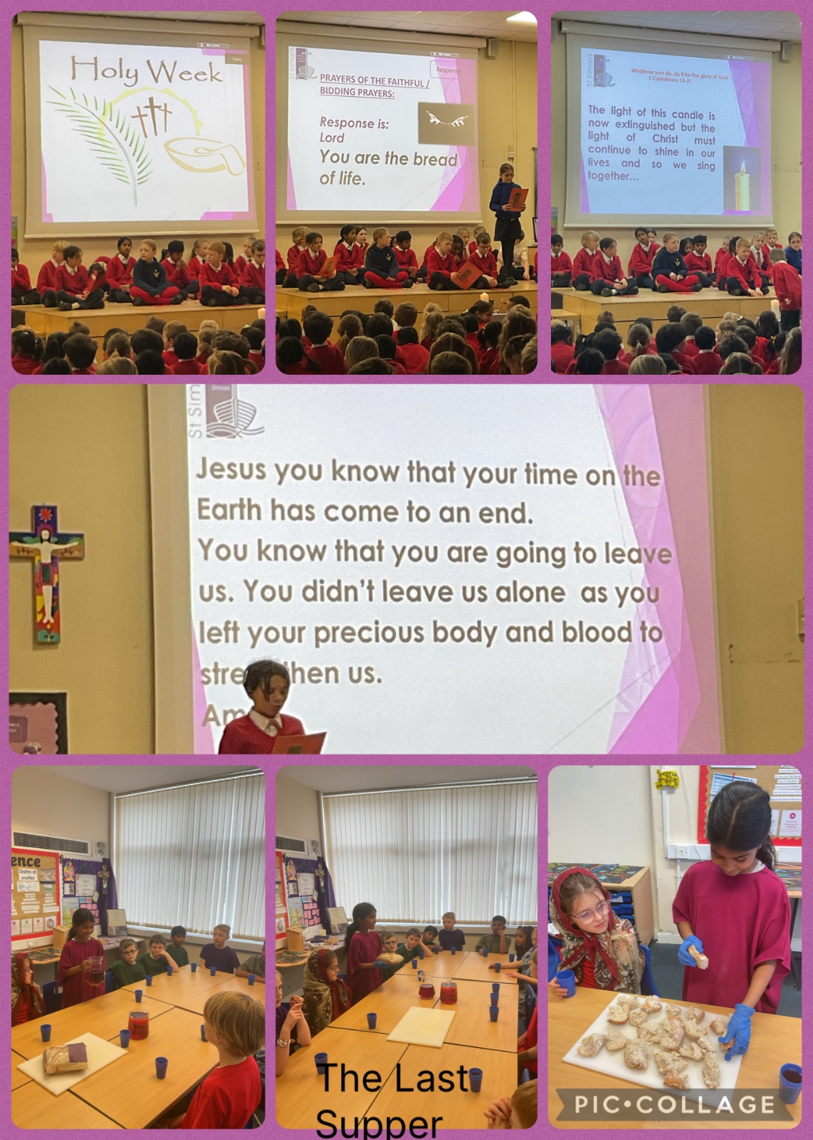 During Holy Week, the Year Four children reflected upon and re-enacted the miracle that Jesus performed at the Last Supper. They thought about how Jesus took bread and wine, blessed them and shared them with his disciples, saying that they were his body and his blood.