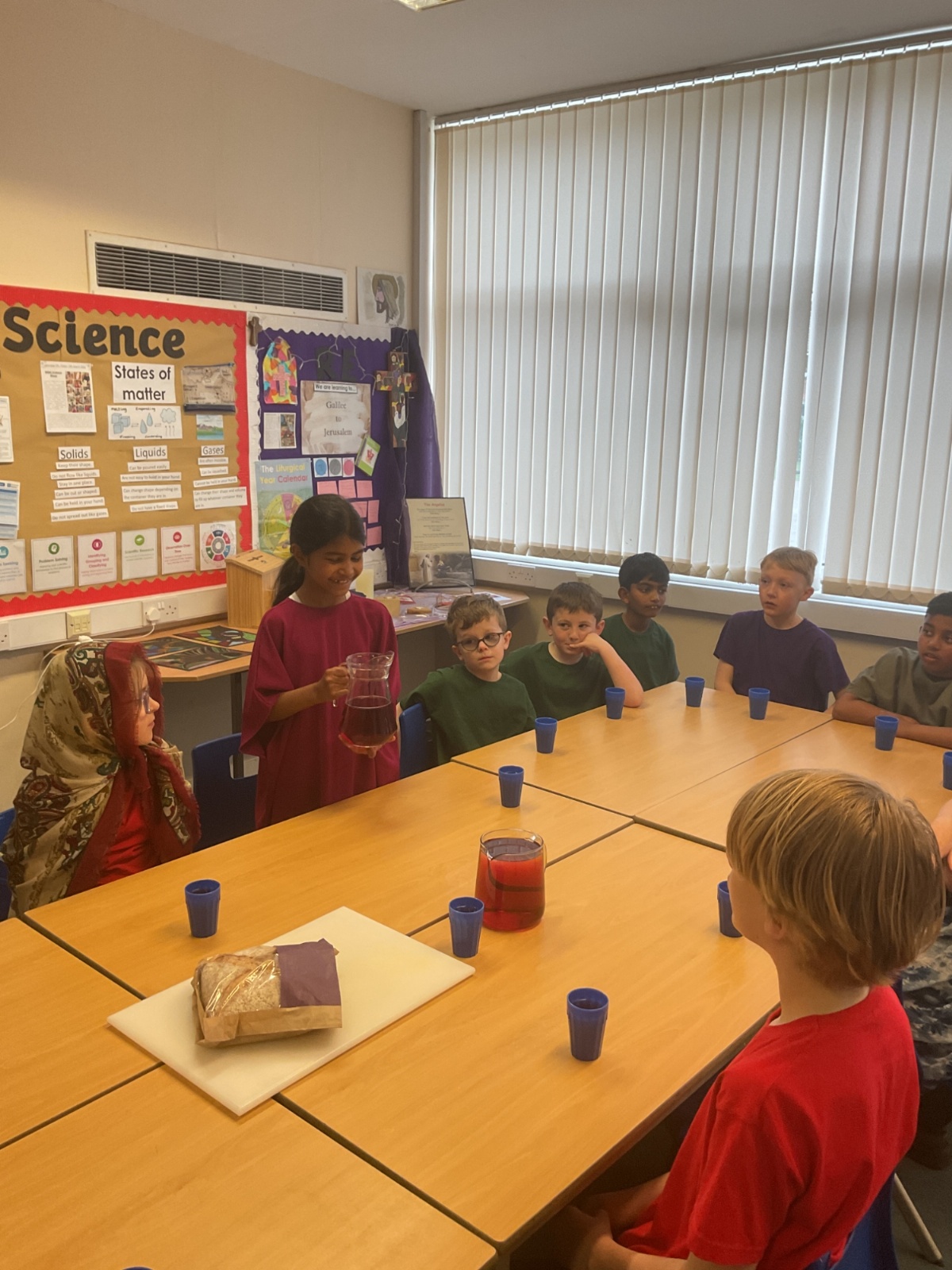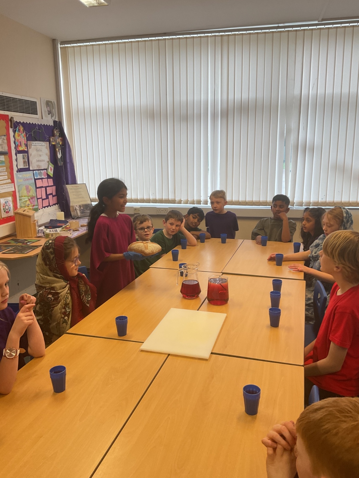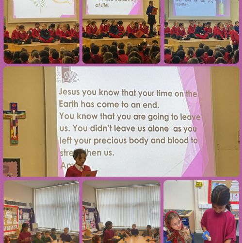 During Holy Week, the Year Four children reflected upon and re-enacted the miracle that Jesus performed at the Last Supper. They thought about how Jesus took bread and wine, blessed them and shared them with his disciples, saying that they were his body and his blood.