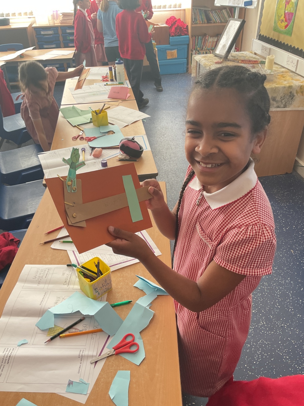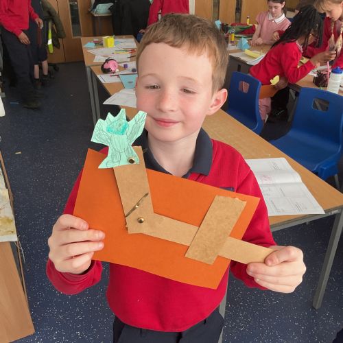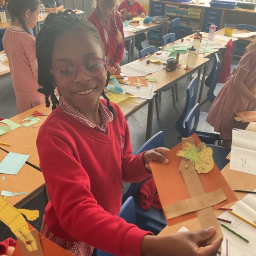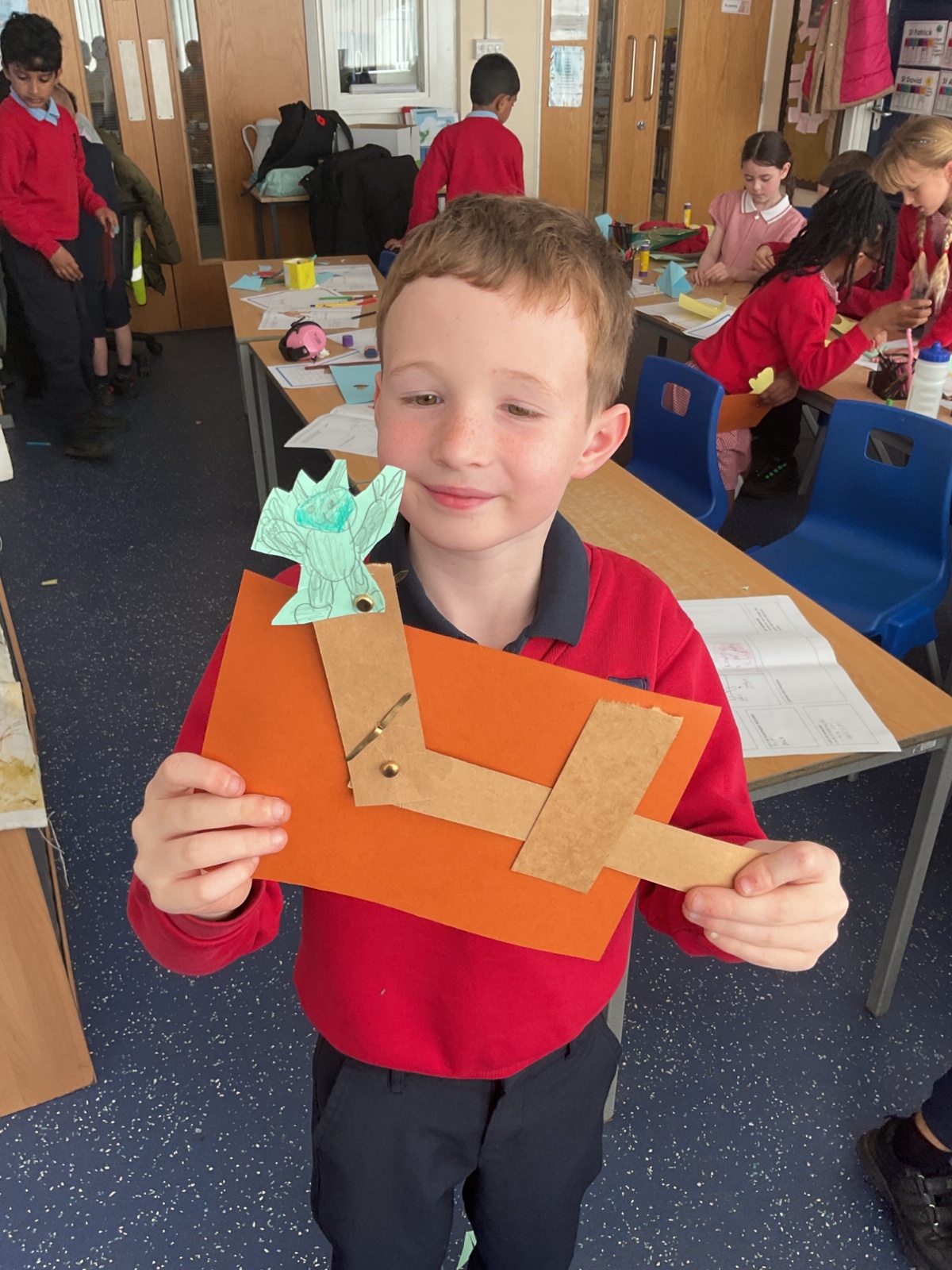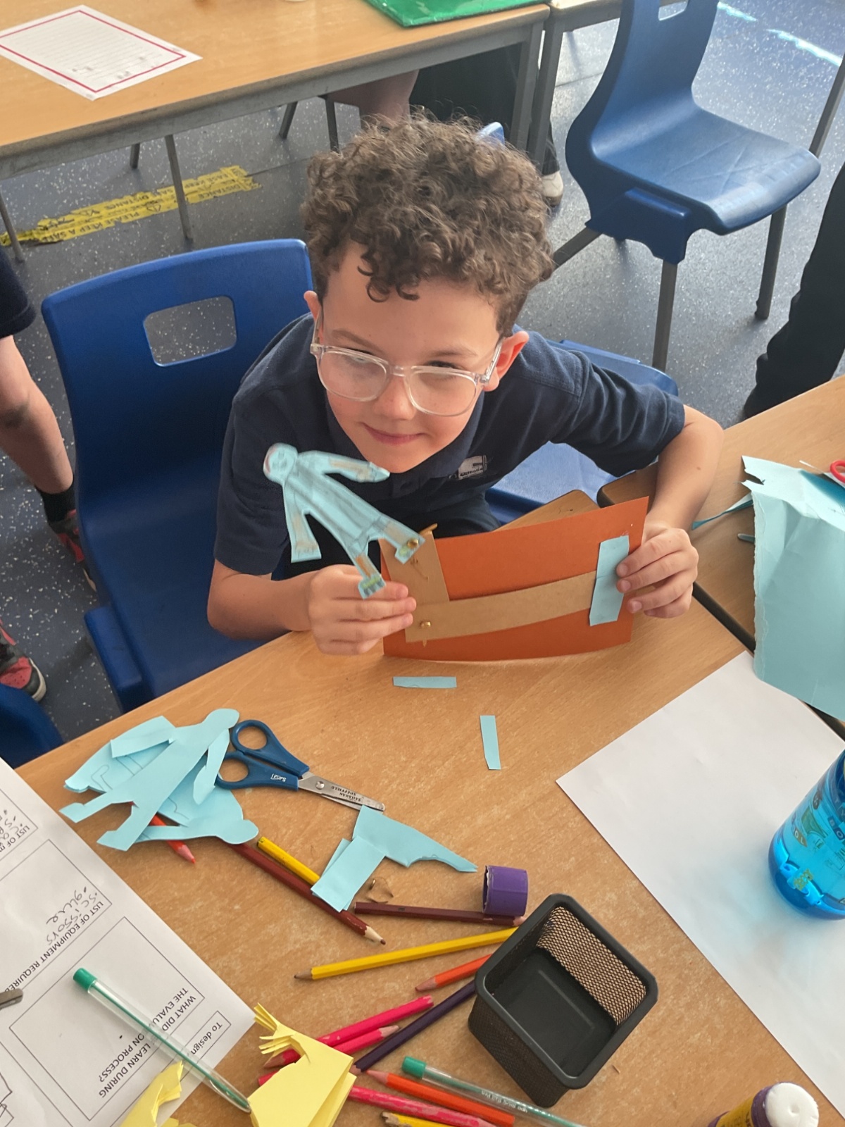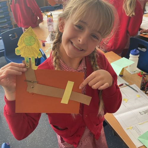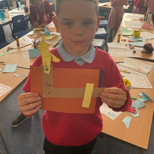 In our Design & Technology lessons, the children completed a mechanisms project, where they designed and created a moving picture. The children needed to include levers and linkages in their product to help their picture to move. They have had a lot of fun throughout the design and creation process.