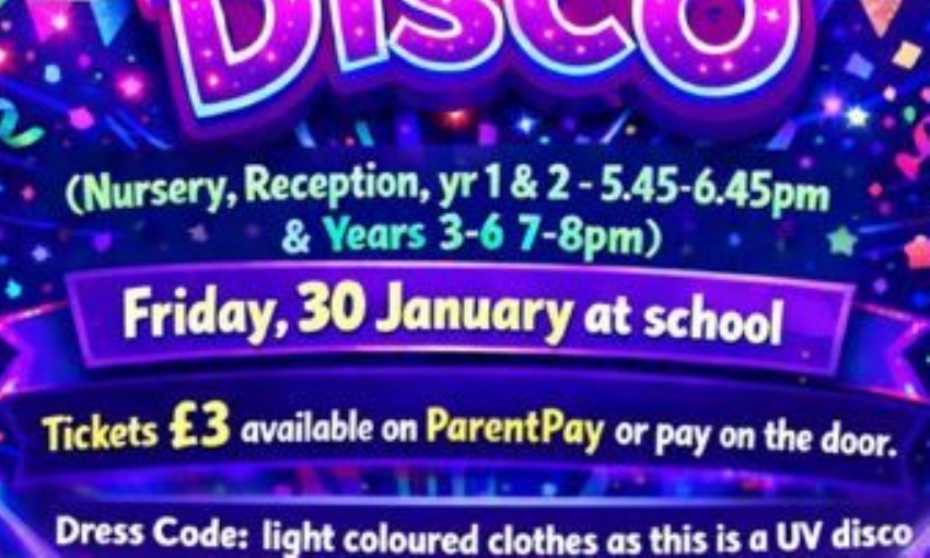All our school children are welcome to come to our New Year Disco, organised and run by the PTA. Dance the night away and have a fabulous time with your friends. We hope to see you there.